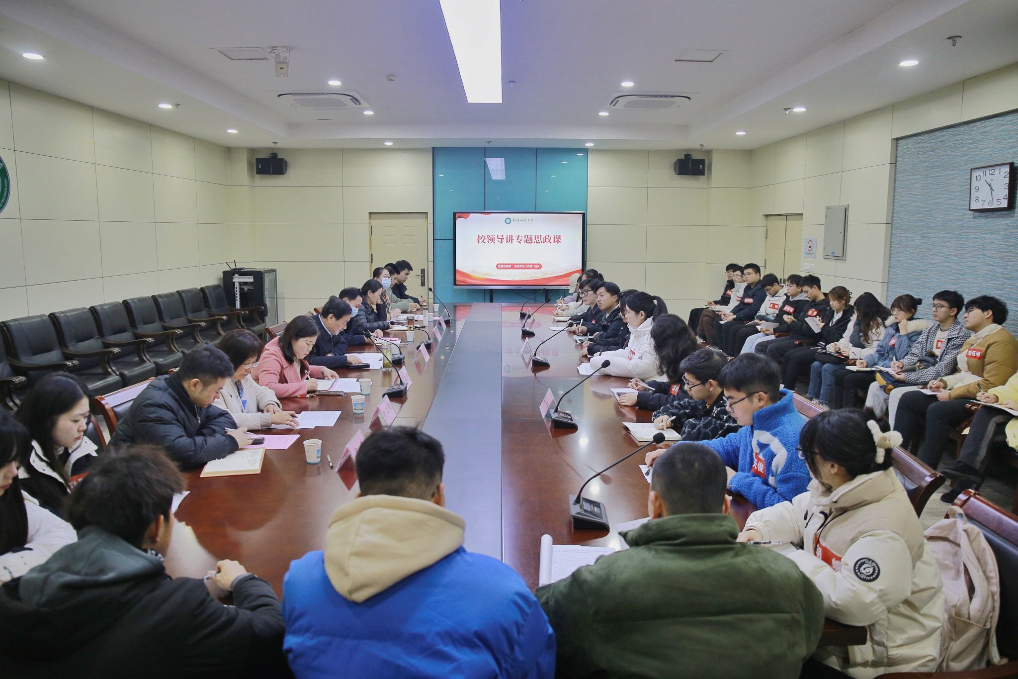 武科大网讯(记者覃宇)1月2日上午,校党委书记徐雁冰以《踔厉奋发 挺膺担当 书写中国式现代化征程中的青春篇章》为题,为50余名本科生和硕士研究生学生干部代表讲授专题思政课。党委副书记孙国胜,党政办公室、党委宣传部、党委学工部、党委研工部、团委部分师生代表参加。