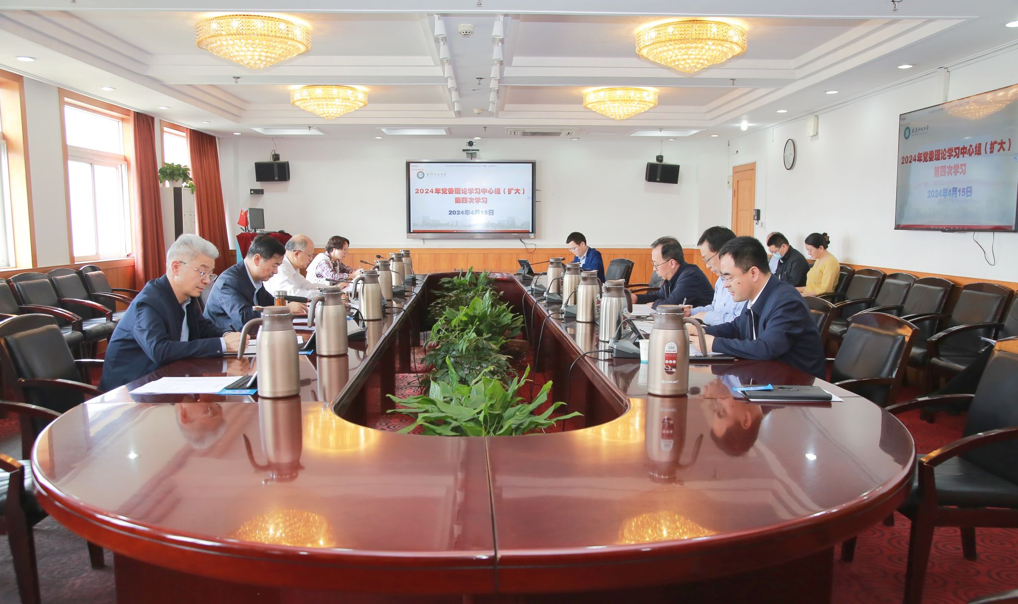 武科大网讯 4月15日,学校在青山校区主楼1610会议室召开2024年党委理论学习中心组(扩大)第四次学习。党委书记徐雁冰主持学习会议并讲话。党委副书记、校长倪红卫和全体在校党委常委参加学习。