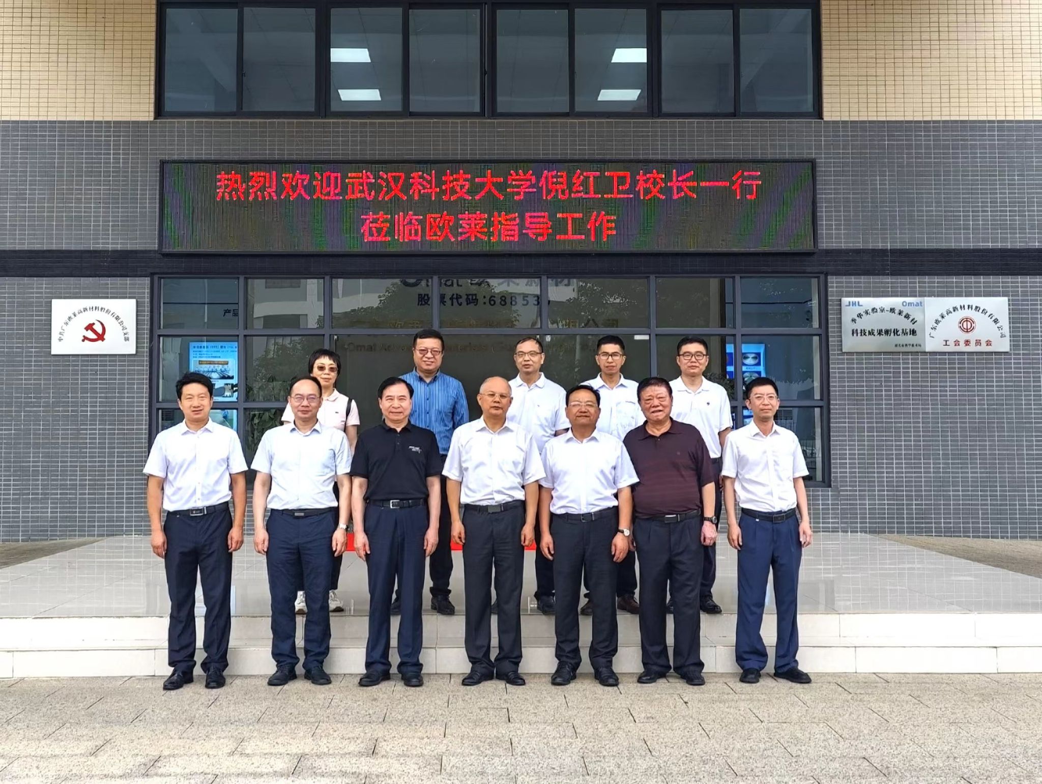 武科大网讯 6月16日,校长倪红卫、校党委副书记孙国胜一行走访校友创办的上市企业广东欧莱高新材料股份有限公司,全力推进“访企拓岗促就业”专项行动。