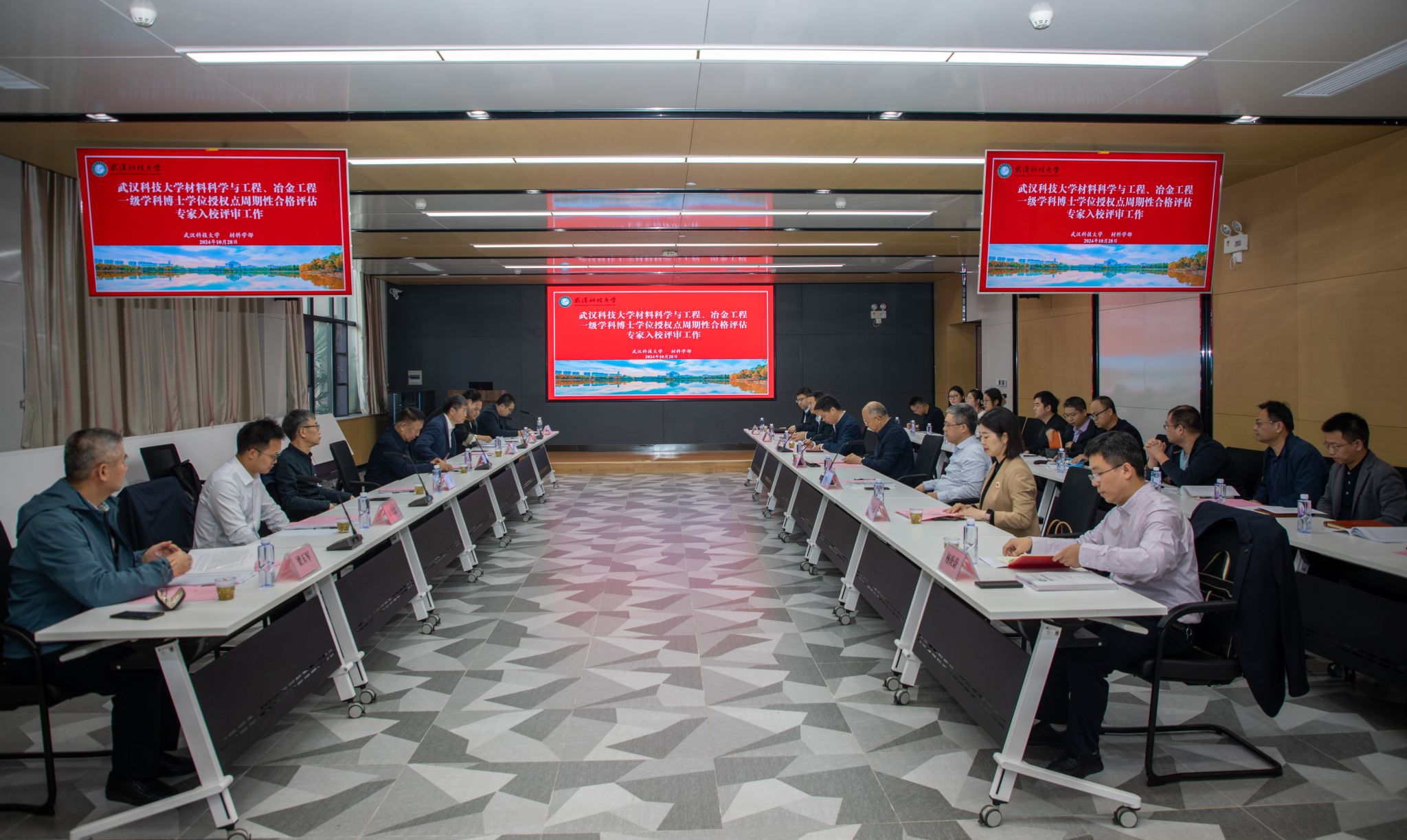 武科大网讯(见习记者耿文潇)10月28日,材料科学与工程、冶金工程一级学科博士学位授权点周期性合格评估专家组来校评审。武汉理工大学张联盟院士任专家组组长,成员包括东北大学姜周华教授、辽宁科技大学汪琦教授、华中科技大学翟天佑教授、中南大学吴壮志教授、北京科技大学马保中教授、中国地质大学(武汉)梁玉军教授。我校校长倪红卫,副校长马腾,研究生院院长程常桂,材料学部全体领导班子成员和学位点相关教师代表参加评审工作。