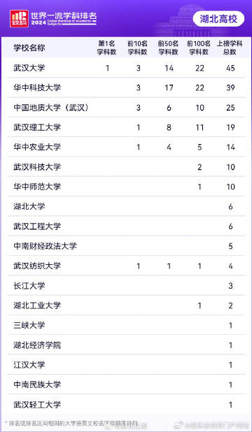 武科大网讯 11月11日,高等教育评价专业机构软科发布2024“世界一流学科排名”。我校10个学科上榜,居湖北省属高校第一。