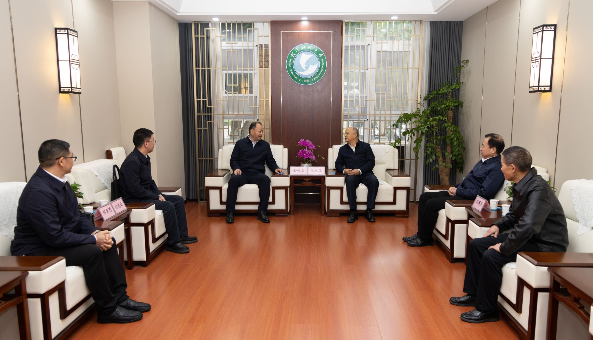 武科大网讯 10月20日,江陵县委书记全运宝率党政及企业家代表团来访我校,就深化校地合作、推动产学研深度融合等事宜座谈。校党委书记倪红卫会见全运宝一行,党委副书记孙国胜出席座谈会。