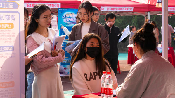 管理专业学生小李和室友结伴来到招聘会,二人都有留在武汉发展的意向,选择在深圳华为慧通公司商务有限公司投出了自己的简历。公司招聘负责人熊世泽热情地说:“我们公司去年光在你们管理学院就招了10个人,可以去找学长学姐们了解一下。”