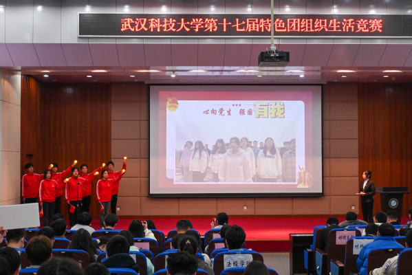 武科大网讯(见习记者张虎琛 摄影黄宏杰)为持续引导共青团员高举中国特色社会主义伟大旗帜,团结青年学子为全面推进中华民族伟大复兴而贡献青春力量,3月2日,我校团委在崇实会堂开展第十七届特色团组织生活竞赛决赛。校团委副书记李宇奇、闫昌昊、何畅担任评委,此次比赛共有18个团支部参加。