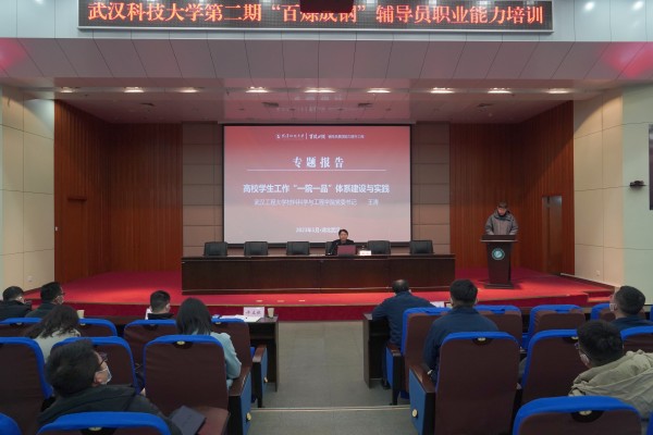 武汉工程大学材料科学与工程学院党委书记王涛为全体学员作“高校学生工作‘一院一品’体系建设与实践”专题报告。王涛结合自身工作经历,从政治高度、理念态度、学识广度等7个不同维度强调了辅导员工作中所应具备的能力,并就如何开展高效能的工作与老师们进行了交流。