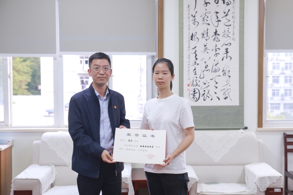 校团委宣读了《关于授予吴宇同学“优秀共青团员”荣誉称号的决定》,并为吴宇颁发荣誉证书。党委研究生工作部为吴宇颁发了阿里公益天天正能量特别奖。