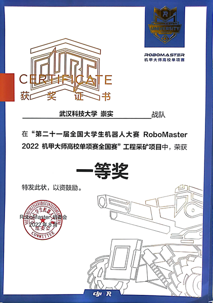 武科大网讯(通讯员匡婉渝 周萌淇)近日,在第二十一届全国大学生机器人大赛RoboMaster2022机甲大师中,我校信息学院程磊教授带领的崇实战队荣获高校单项赛全国赛工程采矿项目一等奖。