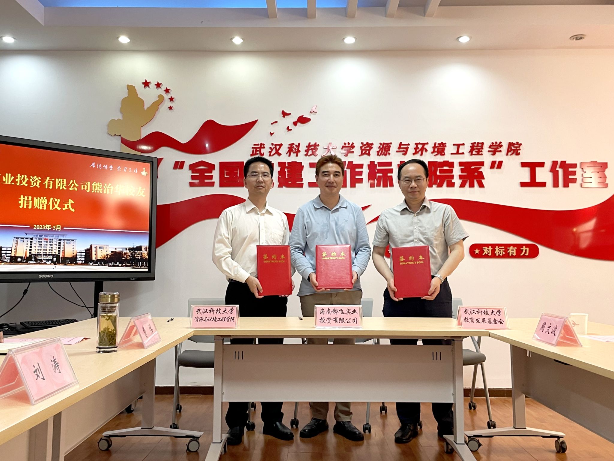 武科大网讯(通讯员王武豪)5月4日,海南铧飞实业投资有限公司总经理、我校选矿90级校友熊治华捐赠仪式在青山校区资环学院5416会议室举行。学校校友工作与社会合作处处长王文涛,资环学院院长刘涛、党委书记曹伟、副院长韩军、副教授周文波及校友联络员施耀斌出席本次捐赠仪式,仪式由曹伟主持。
