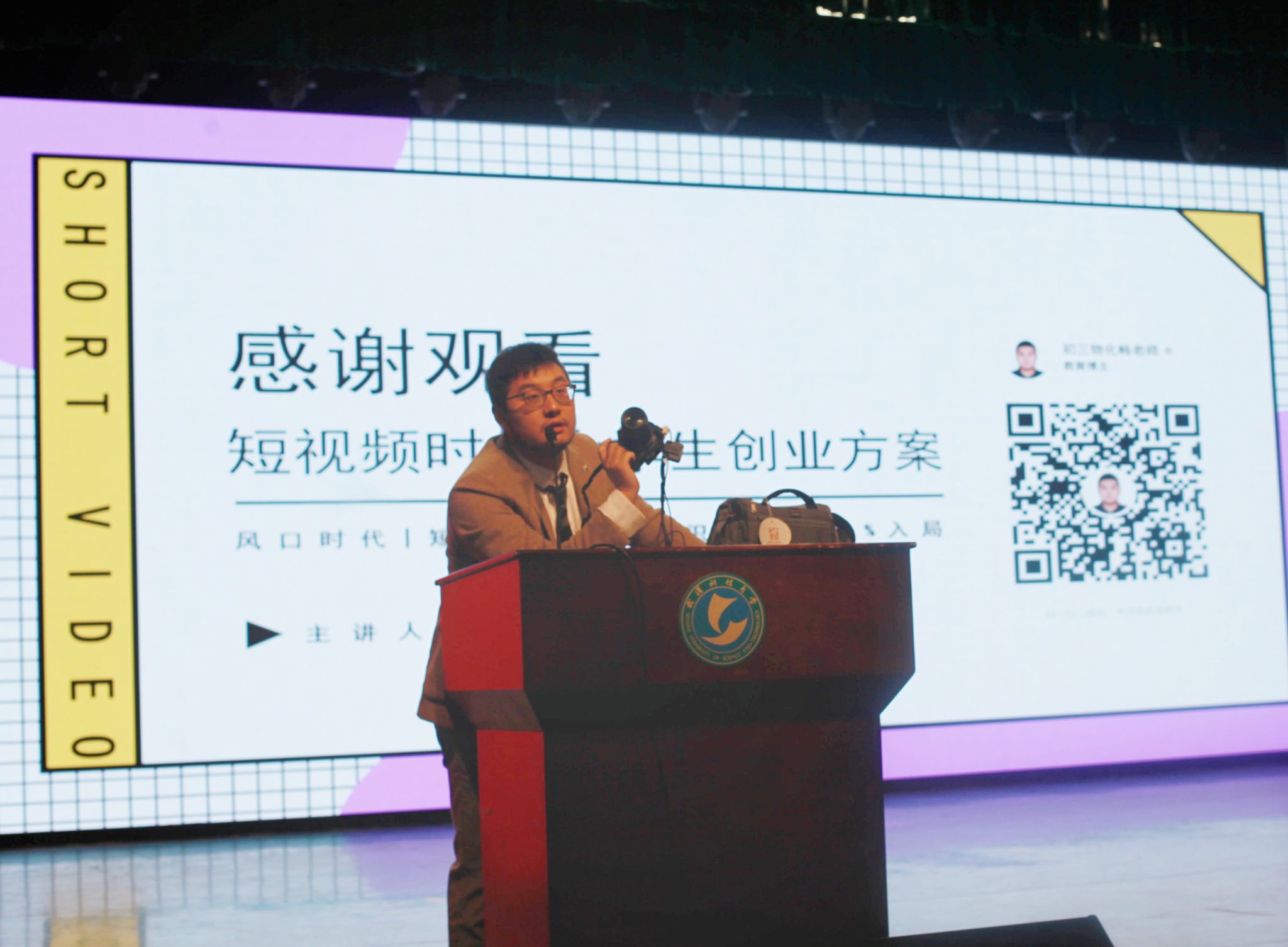 “做培优机构怎么和短视频结合在一起?不同于传单上面千篇一律的内容?短视频可以解决现在教培机构的招生痛点——信任问题。”作为教培行业创业的成功者,肖畅将自身顺应时代把短视频与教培机构相结合的发展经历与在座的学弟学妹分享。在谈及自媒体创业的设备时,他简单计算相应设备的成本,表示自媒体是很好的创业切入点,鼓励大家积极尝试。