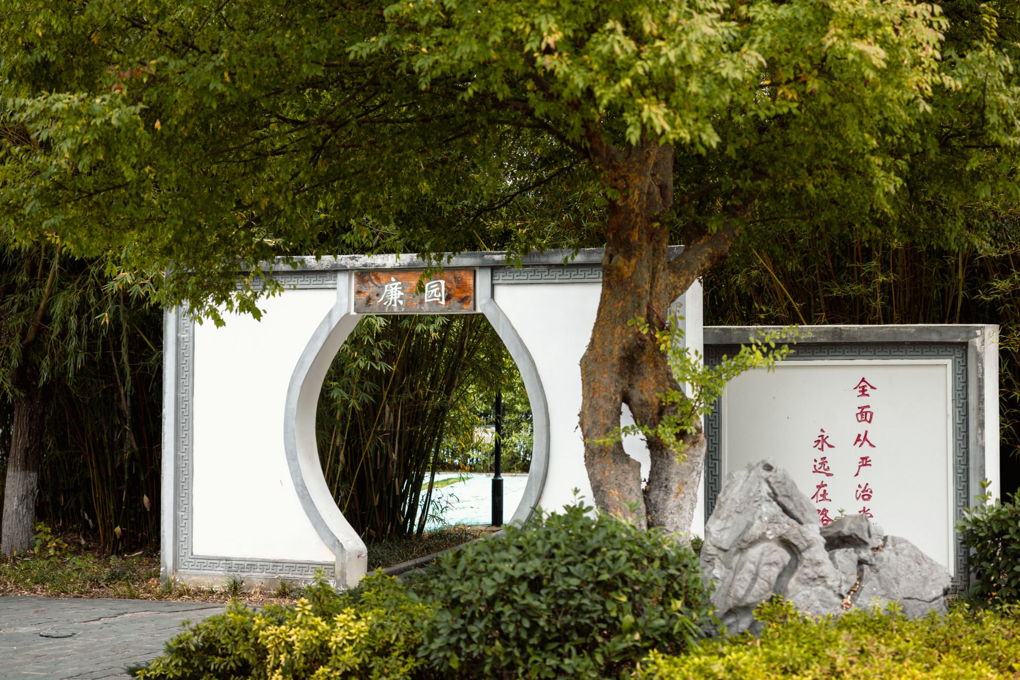 廉园位于沁湖之滨,设清风廊、白昊坡、竹廉韵、德政墙,以“赏松竹、沐清廉、养心性、育人才”为主题,寓教于景,实现人、景、廉有机融合。