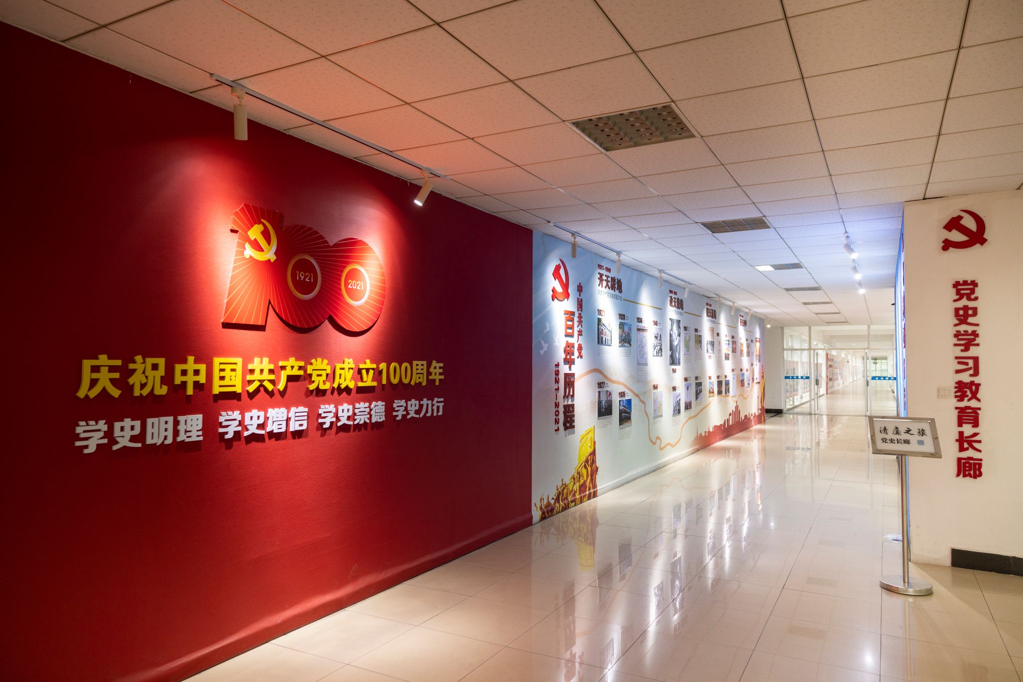 党史长廊以红色为基调,以党的发展脉络为轴线,再现党的百年伟大历程。在党史长廊里,打造有廉政教育微阵地,助推清廉文化入脑入心入行。