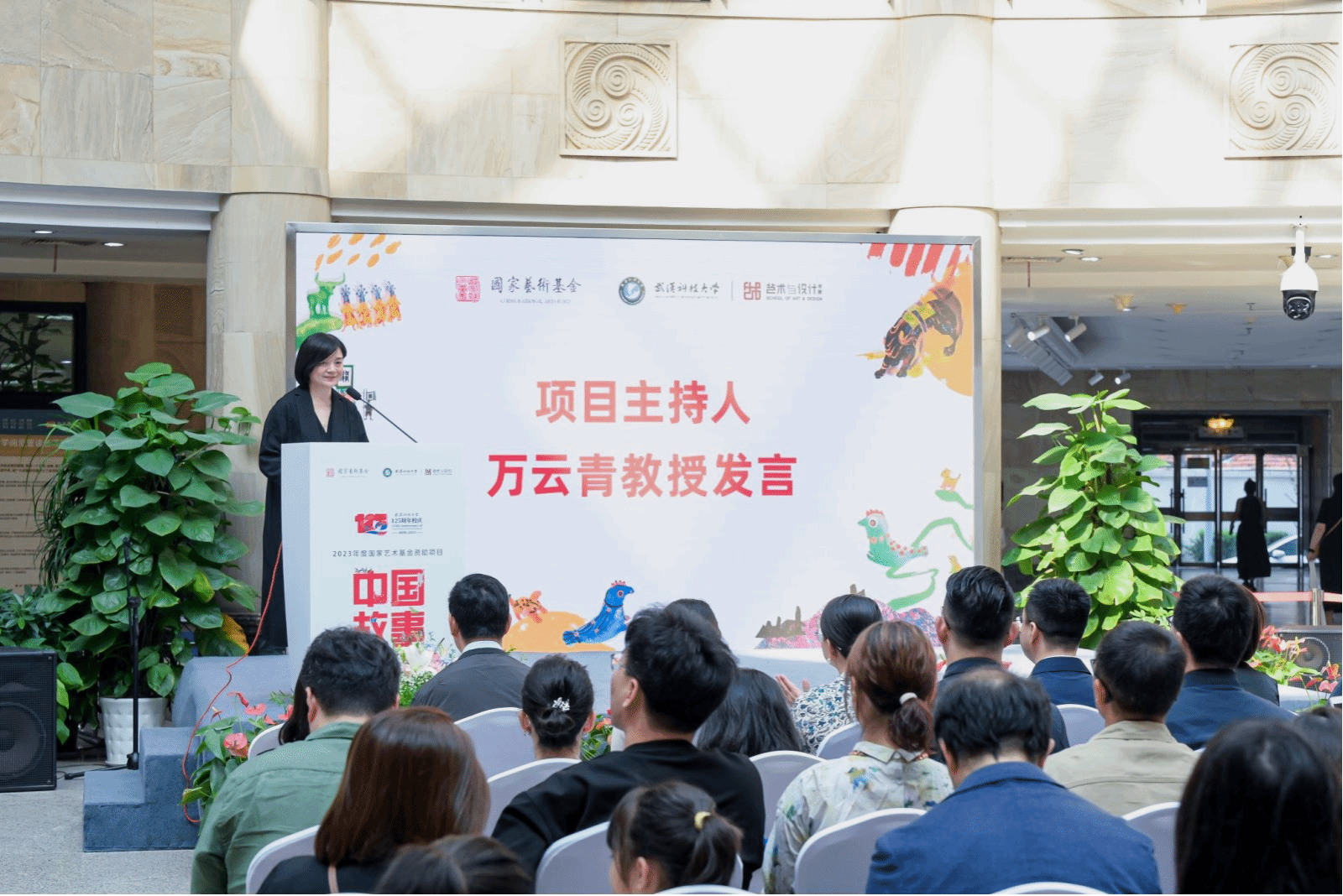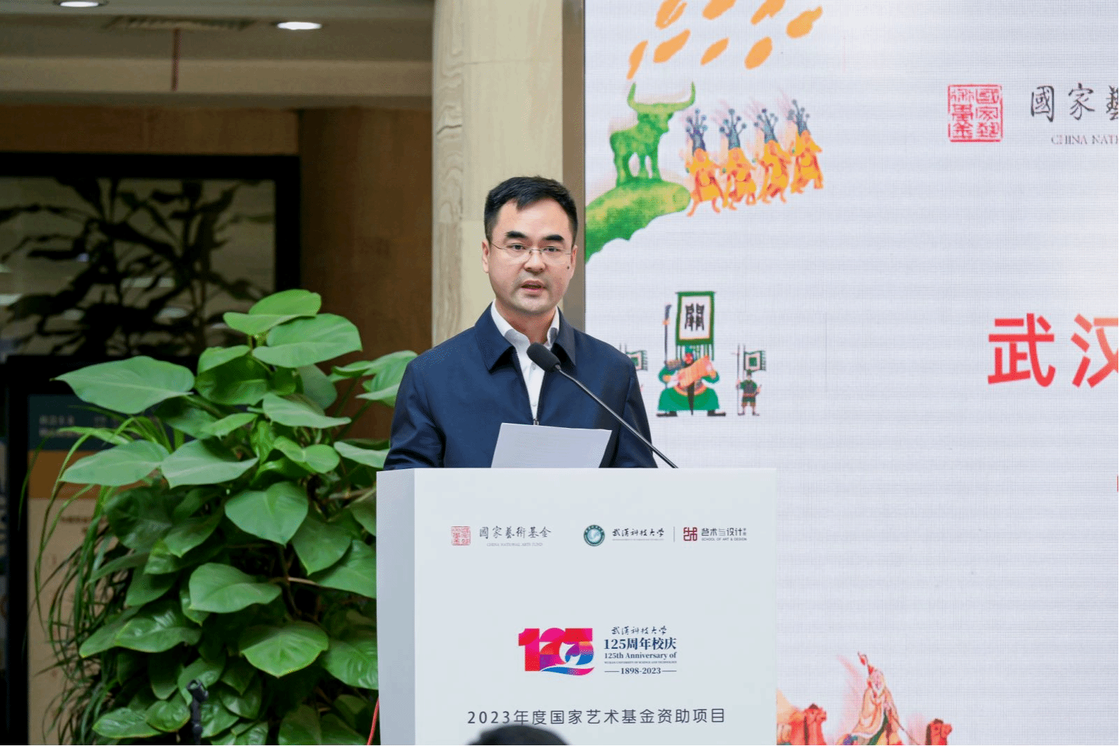 武科大网讯(记者张虎琛)10月15日,由我校和国家艺术基金主办的2023年度国家艺术基金资助项目《“中国故事”少儿读物插图及绘本创作人才培养》汇报展览开幕式在武汉图书馆召开,校党委常委胡剑出席开幕式并讲话。