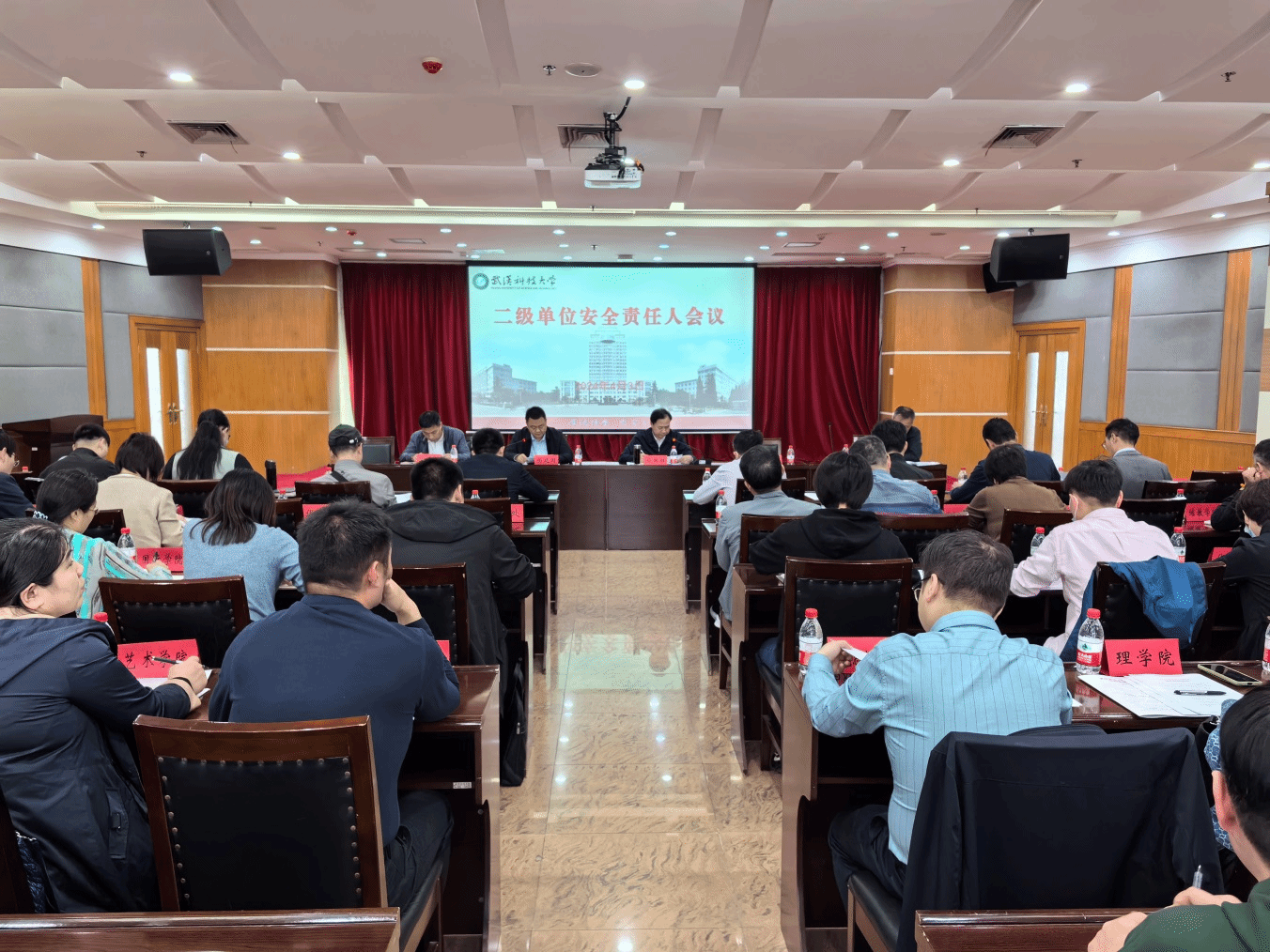 武科大网讯(通讯员黄世军)4月3日下午,学校二级单位安全责任人会议在青山校区主楼18楼报告厅召开。会议由校党委副书记孙国胜主持,各二级单位安全责任人、保卫处有关工作人员参加会议。