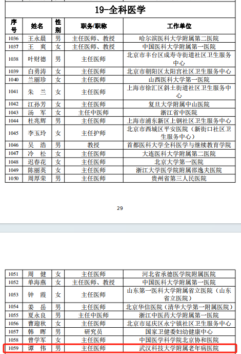 武科大网讯 近日,国家健康科普专家库成员名单(2024版)公布,我校附属老年病医院谭伟教授入选国家全科医学健康科普专家库。