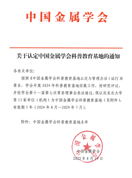 中国金属学会是冶金材料领域最具影响力的学术性科技组织,组织开展学会科普教育基地认定旨在加强冶金材料领域科普教育基地的建设,鼓励社会力量参与科普工作,推动冶金、材料领域科学知识普及。工程实践创新中心将申报中国金属学会科普教育基地工作列入中心长期发展规划并高度重视,精心打磨科普内容体系,完善科普活动机制、创新科普活动形式,强化科普活动保障,经过与参评单位的激烈角逐,并经学会第十一届第七次常务理事会表决通过,最终凭借全面、扎实、细致的准备工作脱颖而出。