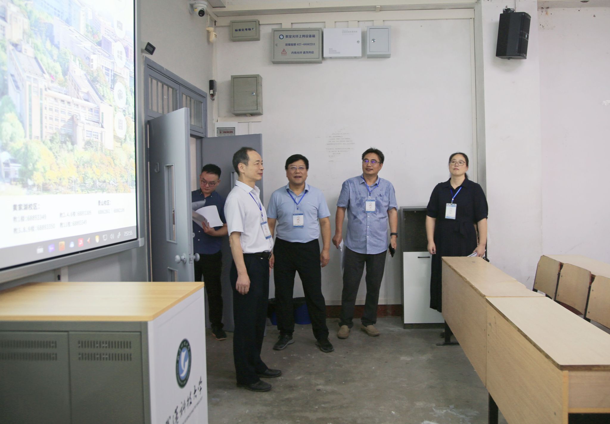 武科大网讯(通讯员邓小龙)9月2日,2024年秋季学期开学第一天,副校长沈季伟、马腾带队实地走访青山和黄家湖校区各教学楼,检查新学期教学情况,通过巡课、看课、查课的方式,指导新学期第一天教学情况,并就教师到岗、学生到课、师生课堂精神面貌、课堂秩序、教学设施和后勤服务保障等情况进行了全面认真地检查。本科生院、学工处、后勤保障部、信息中心、黄家湖校区综合办等职能部门领导及部分学院领导陪同检查。