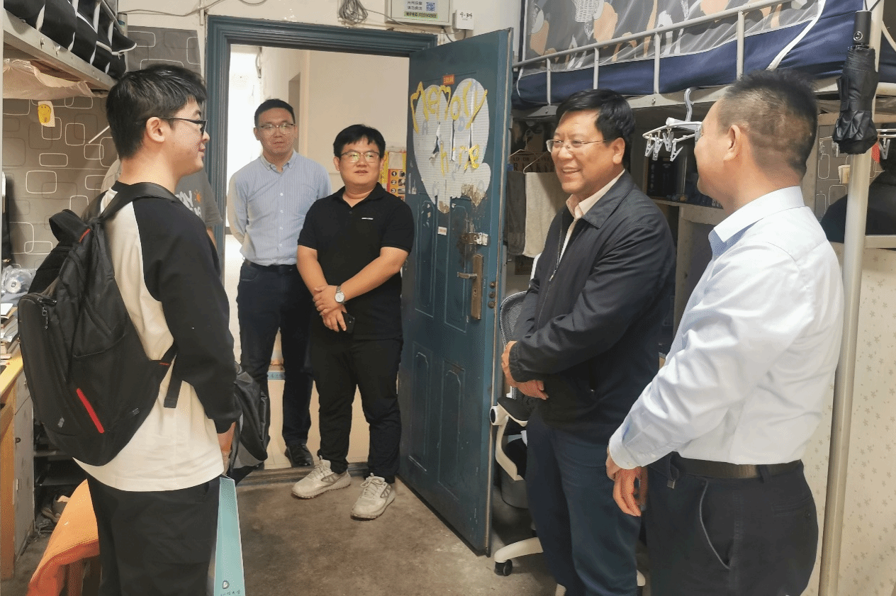 武科大网讯(通讯员罗思宇 郑晓旭)10月30日下午,学校党委副书记沈季伟深入城建学院2024级新生和计算机学院2021级毕业生学生宿舍,开展了“红色钢铁熔炉”“一站式”学生社区建设提质增效系列之“师生面对面”活动,并慰问家庭经济困难学生和少数民族学生,发放了慰问物资。城建学院党委书记徐斌、副书记胡丹蕾、全体辅导员以及计算机学院党委书记余淑均、副书记李苑、辅导员郑晓旭、刘广胜分别在北苑和南苑宿舍陪同走访。