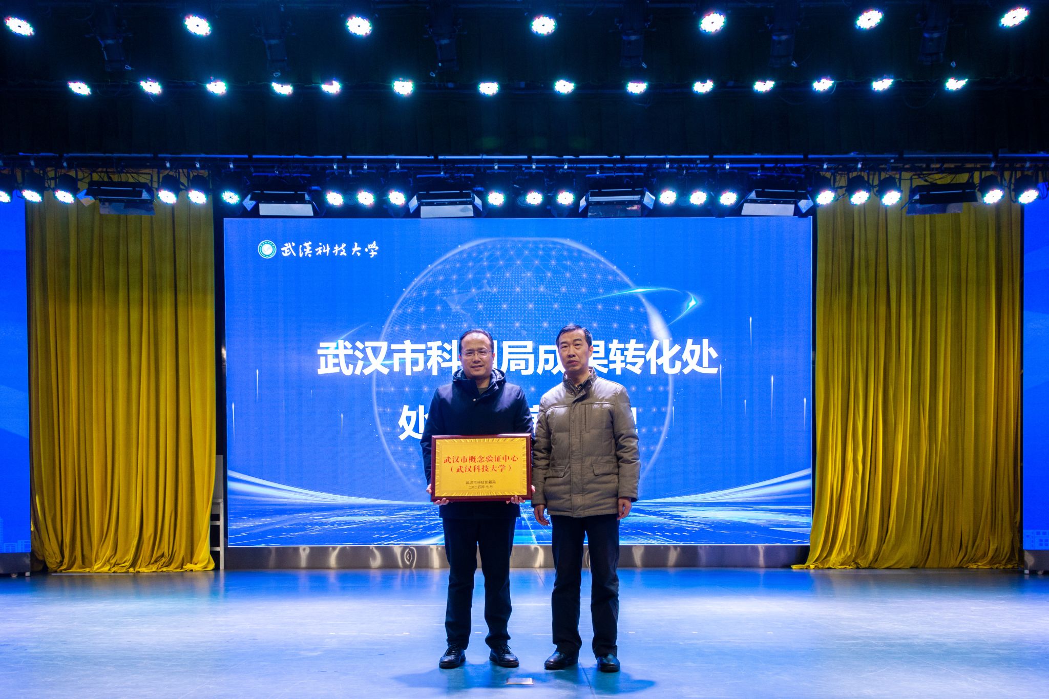 武汉市科创局成果转化处处长胡寅为武汉市高温绿色新材料概念验证中心授牌。