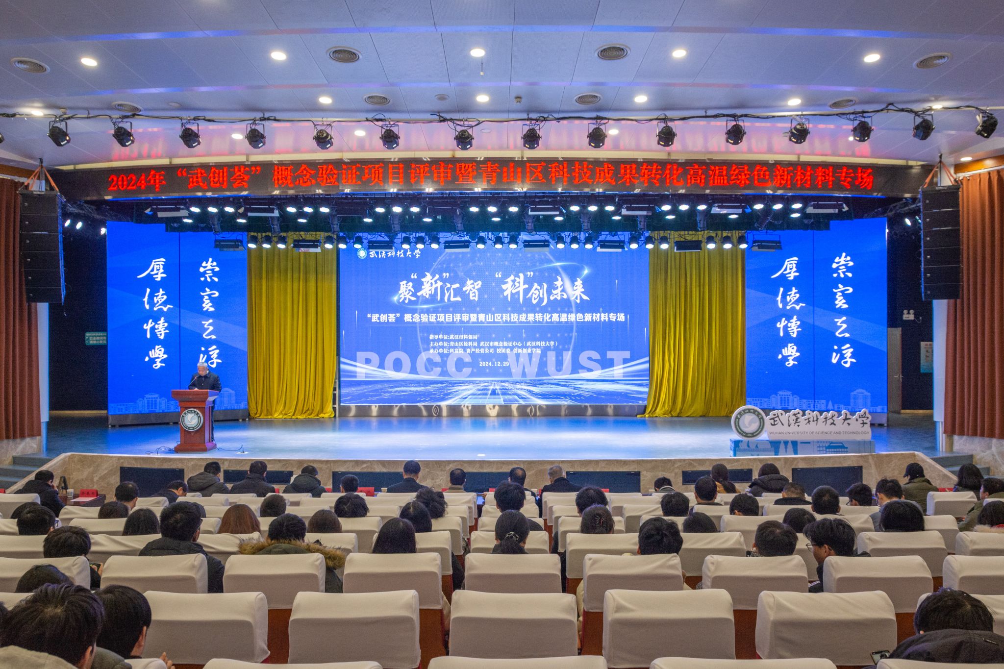 武科大网讯(通讯员周文君 严梦帆 摄影吴磊)12 月 29 日,一场聚焦科技创新前沿的盛会 ——“武创荟” 概念验证评审暨青山区科技成果转化高温绿色新材料专场活动在我校青山校区碧园会堂盛大开幕。我校副校长马腾,武汉市科创局成果转化处处长胡寅、青山区经科局副局长黄巍出席活动,近百名专家学者、企业代表和在校学生齐聚一堂。活动由资产经营有限公司党总支书记丁胜斋主持。