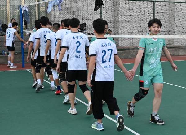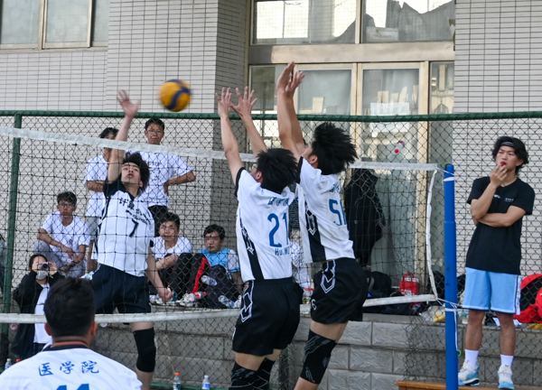 观察、冲刺、跳跃、击打!发球、垫球、传球、扣球!为激发学生运动热情,提高大学生身体素质,4月8日到4月16日,我校在北园排球场举办了“院系杯”排球比赛,来自各学院的男排女排共计15支队伍参与比赛。经过激烈的“小组赛”“六进四”“半决赛”和“决赛”,最终,医学院男排队、计算机学院男排队、法经学院男排队分别获得男子组冠亚季军,管理学院女排队、法经学院女排队、医学院女排队分别获得女子组冠亚季军。(黄宏杰)