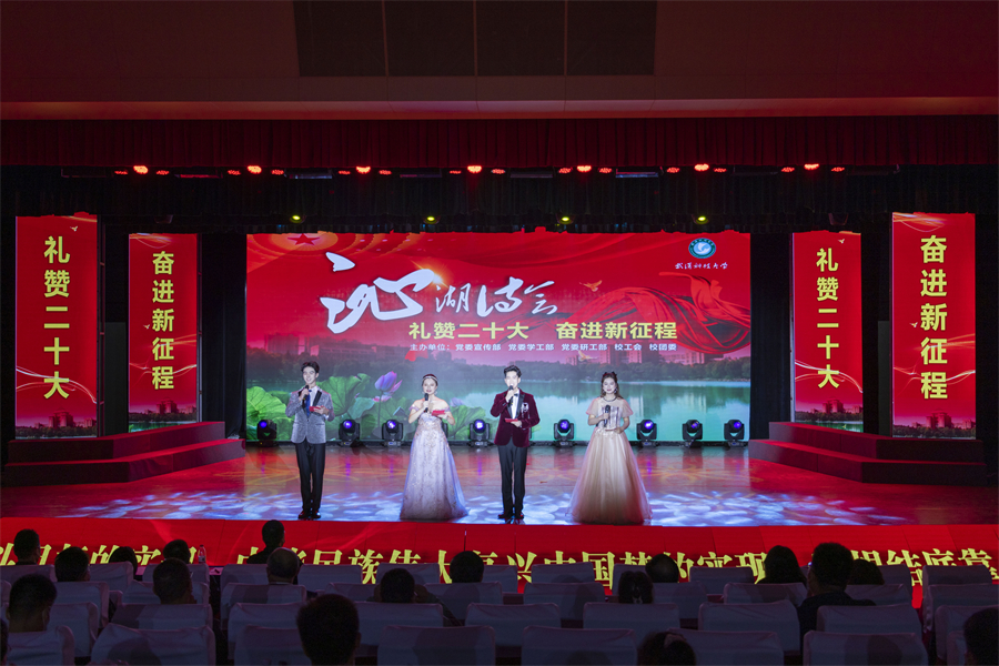 武科大网讯(记者陈孖川 见习记者覃垚)11月20日晚上,我校在黄家湖校区学术报告厅举行第七届“沁湖诗会”,并在官方视频号、抖音两个平台同步直播。诗会以“礼赞二十大 奋进新征程”为主题,讲述中国共产党的百年光辉历程,展现我校学子与时代同频共振的青春担当,抒发武科大人矢志报国、勇毅前行的爱国情怀。