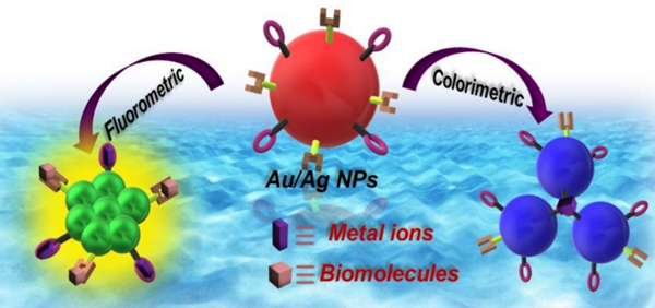 金和银纳米颗粒,简称AuNPs 和 AgNPs,经过共价或非共价表面功能化修饰,可以得到光学、电学和光热特性优异的纳米有机/无机杂化材料,在污染物检测、痕量分析等相关研究领域显示出广泛的应用前景。这篇综述文章系统归纳和总结了如何利用各种有机螯合受体功能化 AuNPs 和 AgNPs,进而发展针对有害金属离子和健康相关生物分子的比色和荧光传感器;同时,涵盖了某些其它类型的金和银纳米材料,例如金纳米团簇(AuNCs)、银纳米团簇 (AgNCs) 和银量子簇 (AgQCs)。该论文对相关领域的发展具有一定的指导意义。