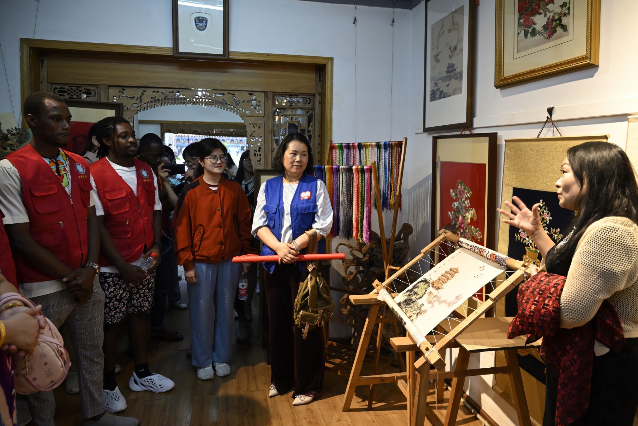 9月20日,15名国际学生与志愿者在我校国际学院的组织下,来到了位于锦绣坊的黄春萍汉绣室,在国家非物质文化遗产汉绣项目代表性传承人黄春萍的带领下,共同参观的锦绣坊及室内所展示的汉绣作品,了解学习并集体体验了汉绣的制作过程,众人的表现获得了黄春萍的肯定。同时,一行人还购票进入了武汉革命博物馆,依次参观了毛泽东旧居、农讲所、五大会址等区域。(熊雄)