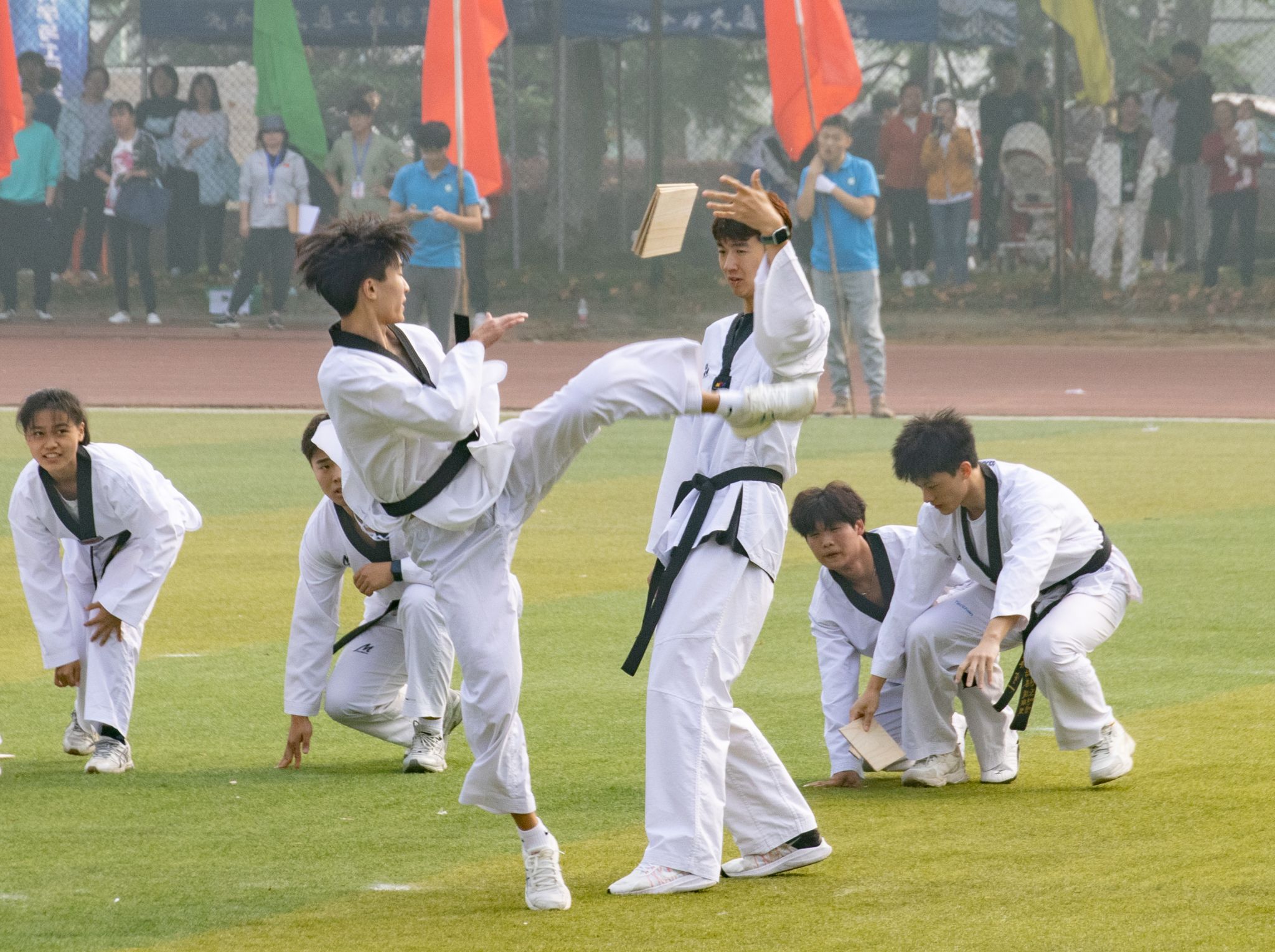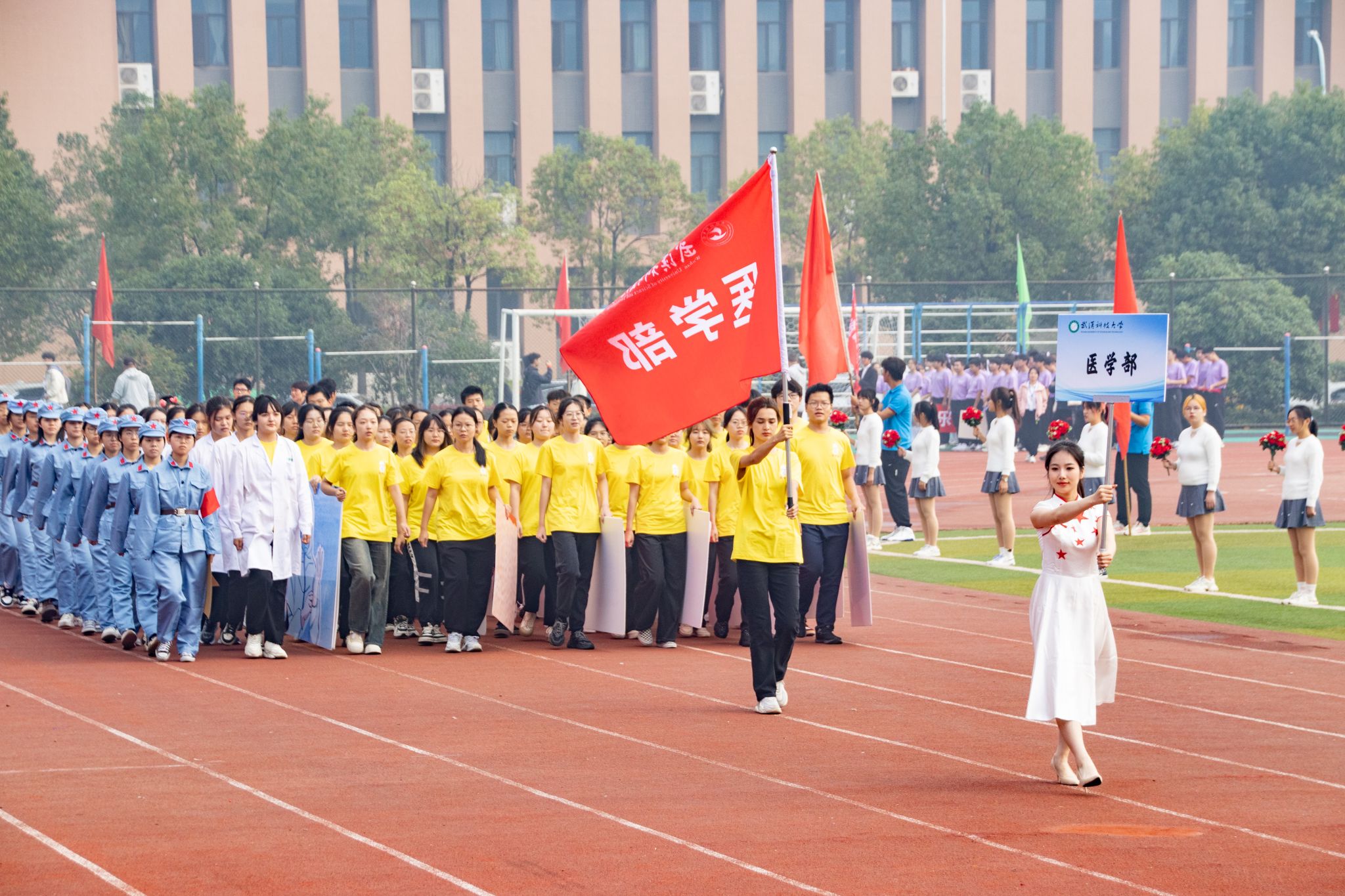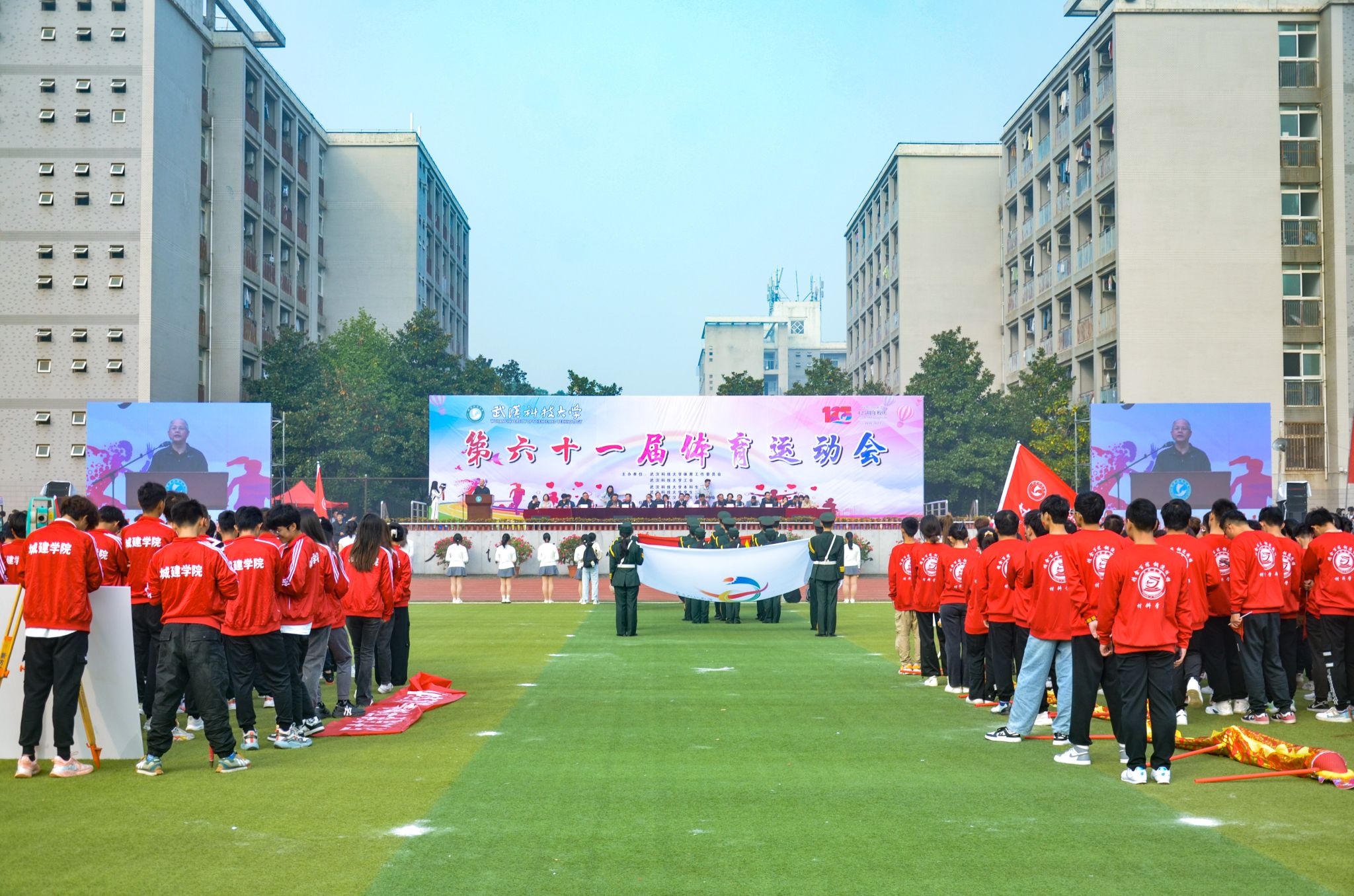 10月26日上午,我校第六十一届运动会开幕式在南苑操场隆重召开。大会开始后,各代表队依次入场,全体成员奏唱国歌,校长致开幕词后,运动员代表及裁判员代表宣誓,随后运动会宣布开幕。各个学院的方阵整齐划一,展现出高度的纪律性和团队合作精神。同时,各个学院的表演也给观众带来了精彩绝伦的视觉盛宴。团体操表演充满活力,舞龙表演尽显文化底蕴,跆拳道表演展现力量与技巧之美。最后师生百人进行师生健康跑,体现“健康奔跑向未来”的主题,鼓励大家积极参与体育运动。整个开幕式充满了激情和活力,为运动会的顺利进行打下了良好的基础。(田世杰 母鑫宇 王政全