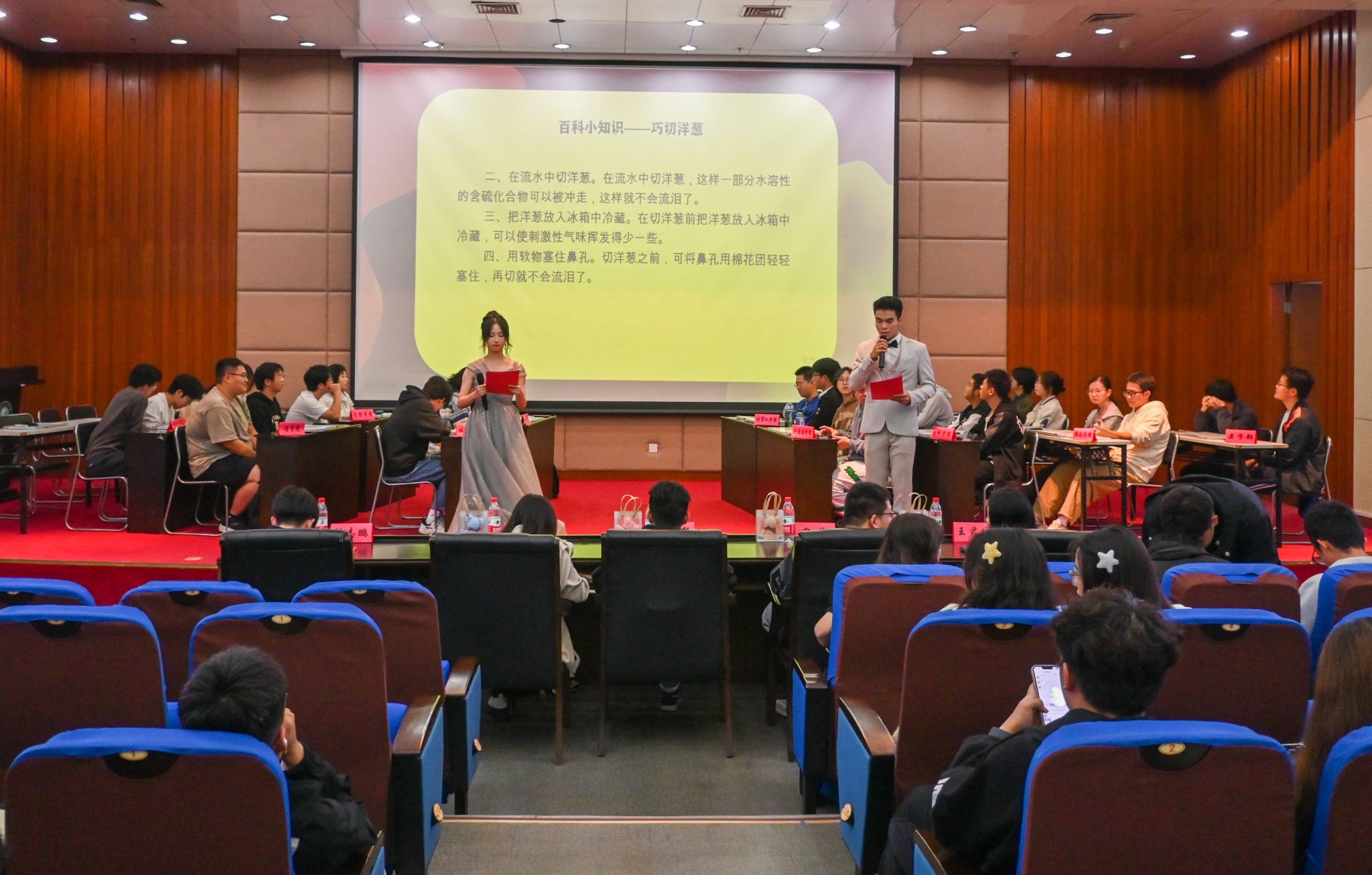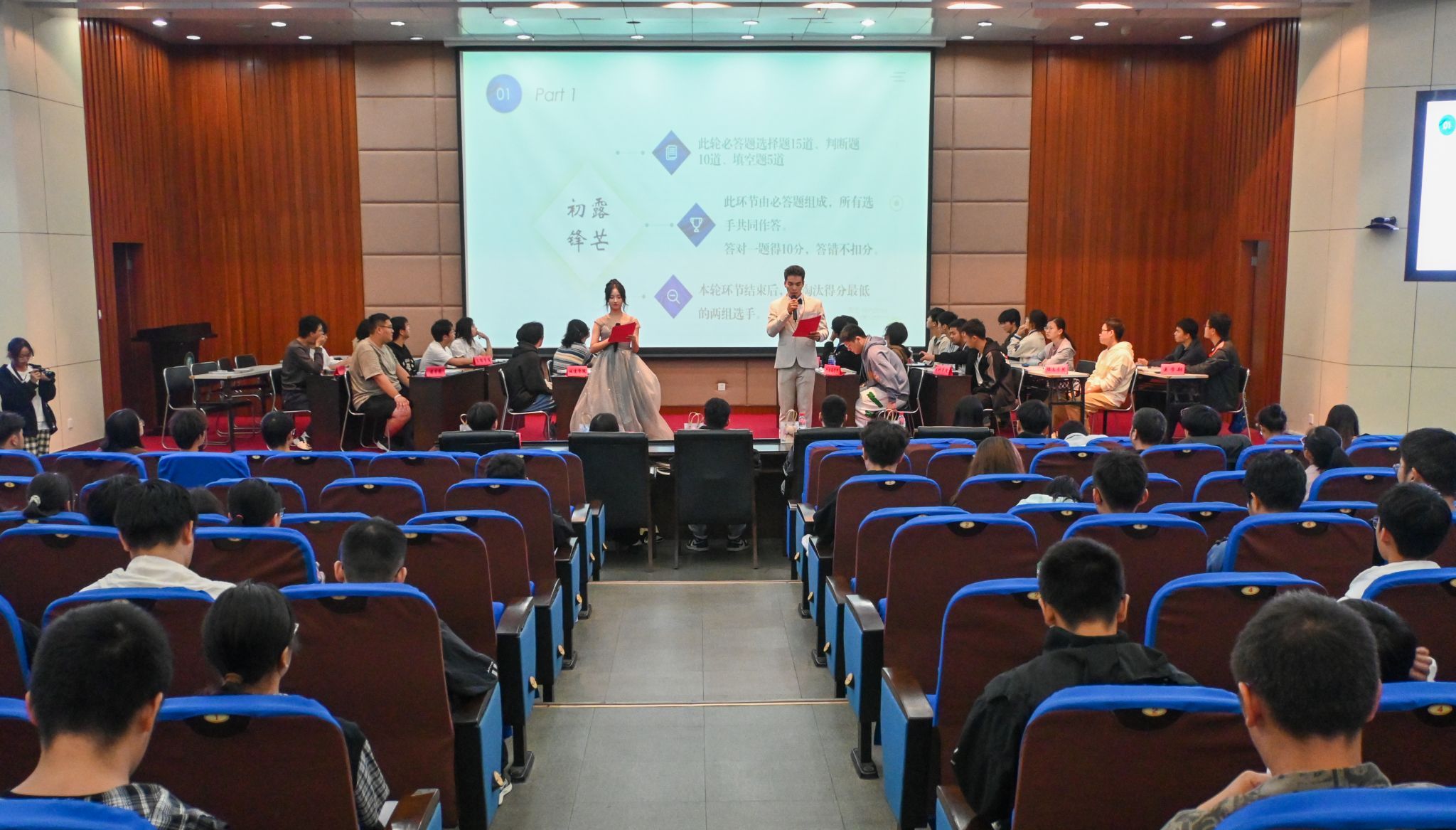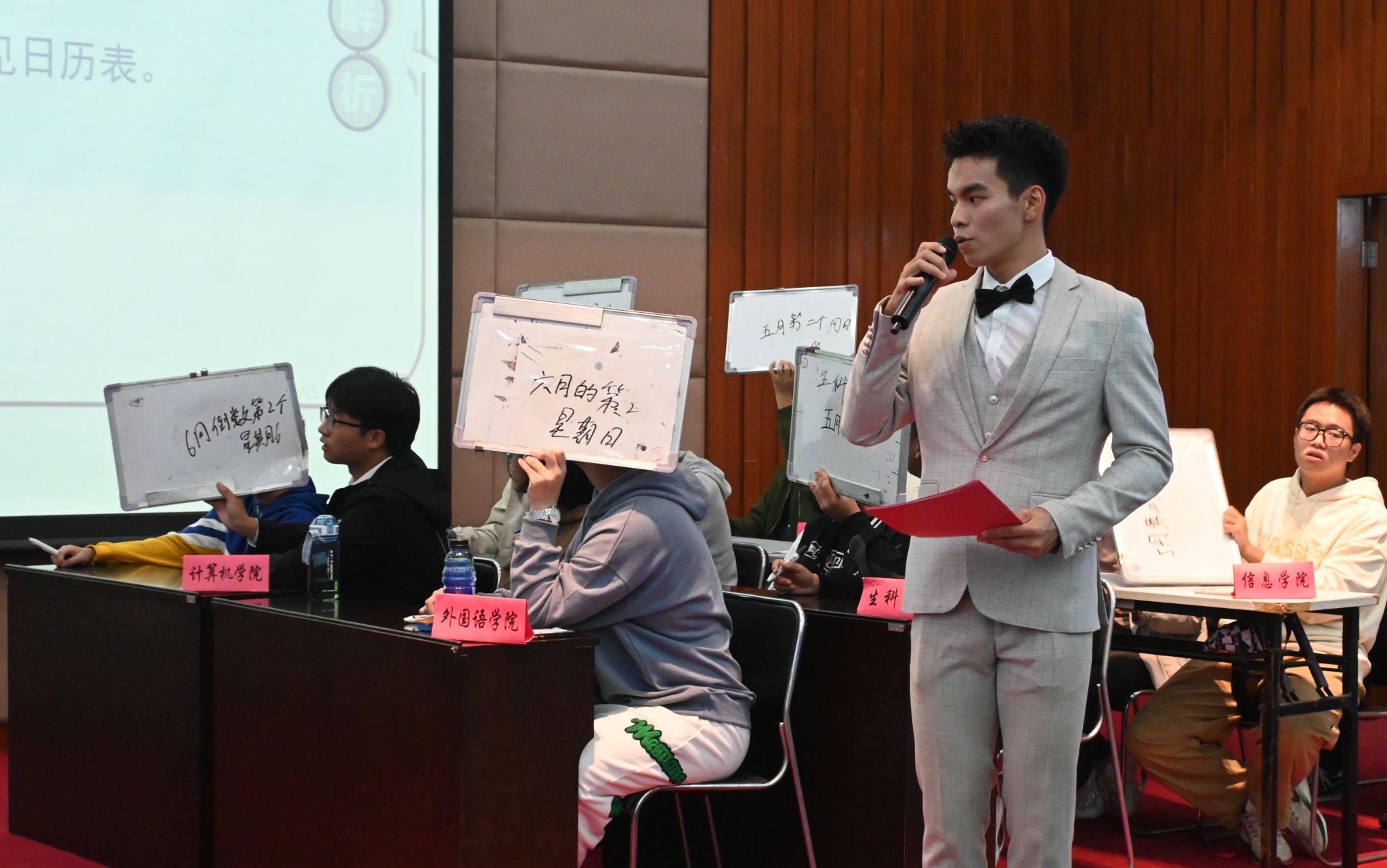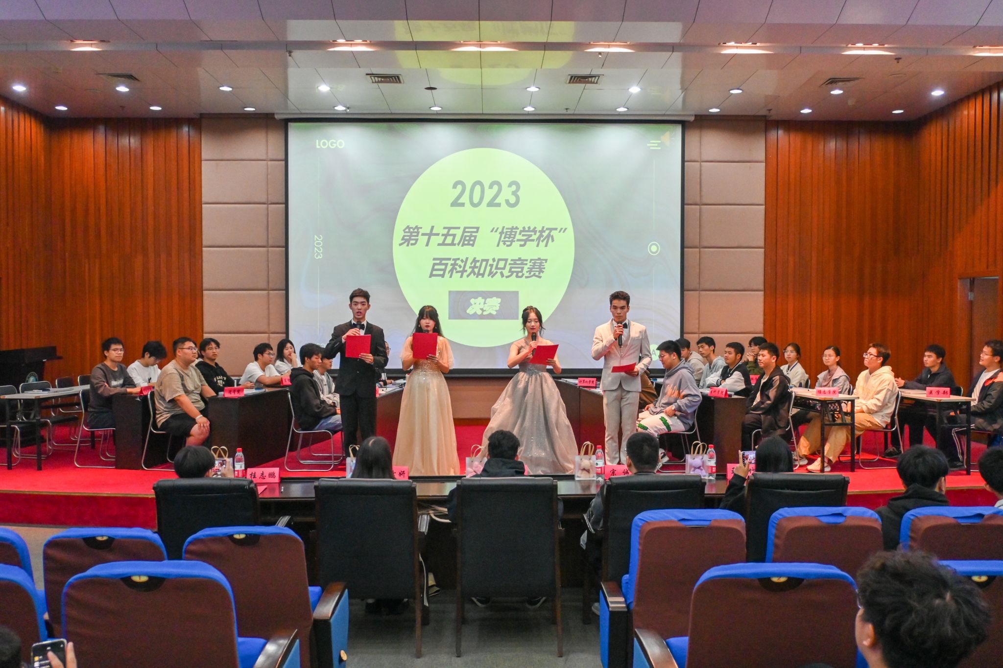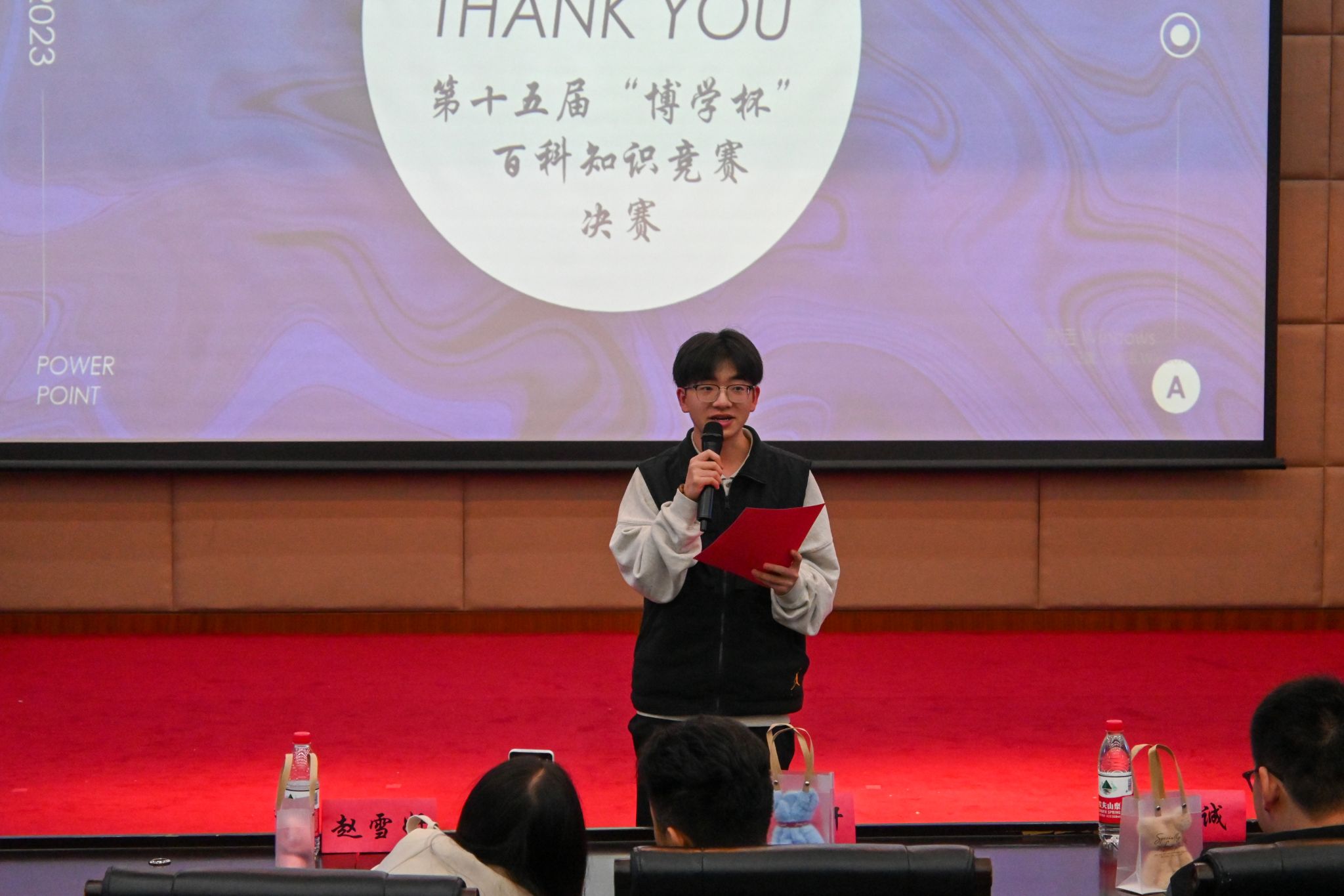 为丰富新生大学生活,增强新生学习、了解、运用知识的能力,营造善学博学好学的氛围。11月4日,校学生会学术部于崇实会堂举办了第十五届“博学杯”百科知识大赛决赛。比赛共分四轮,涉及我校校史常识、中国传统文化常识、日常生活知识等,运用选择、判断、填空三种题型进行比拼。经过激烈比拼,理学院选手获得了一等奖,管理学院和汽车与交通工程学院选手获得了二等奖,化工学院、法经学院和医学部选手获得了三等奖。校学生会主席团成员桂志鹏、赵雪妍,青年志愿者服务总队队长牛子轩,社团管理部主席宗诚、王君竹作为嘉宾到场参与。(黄宏杰)