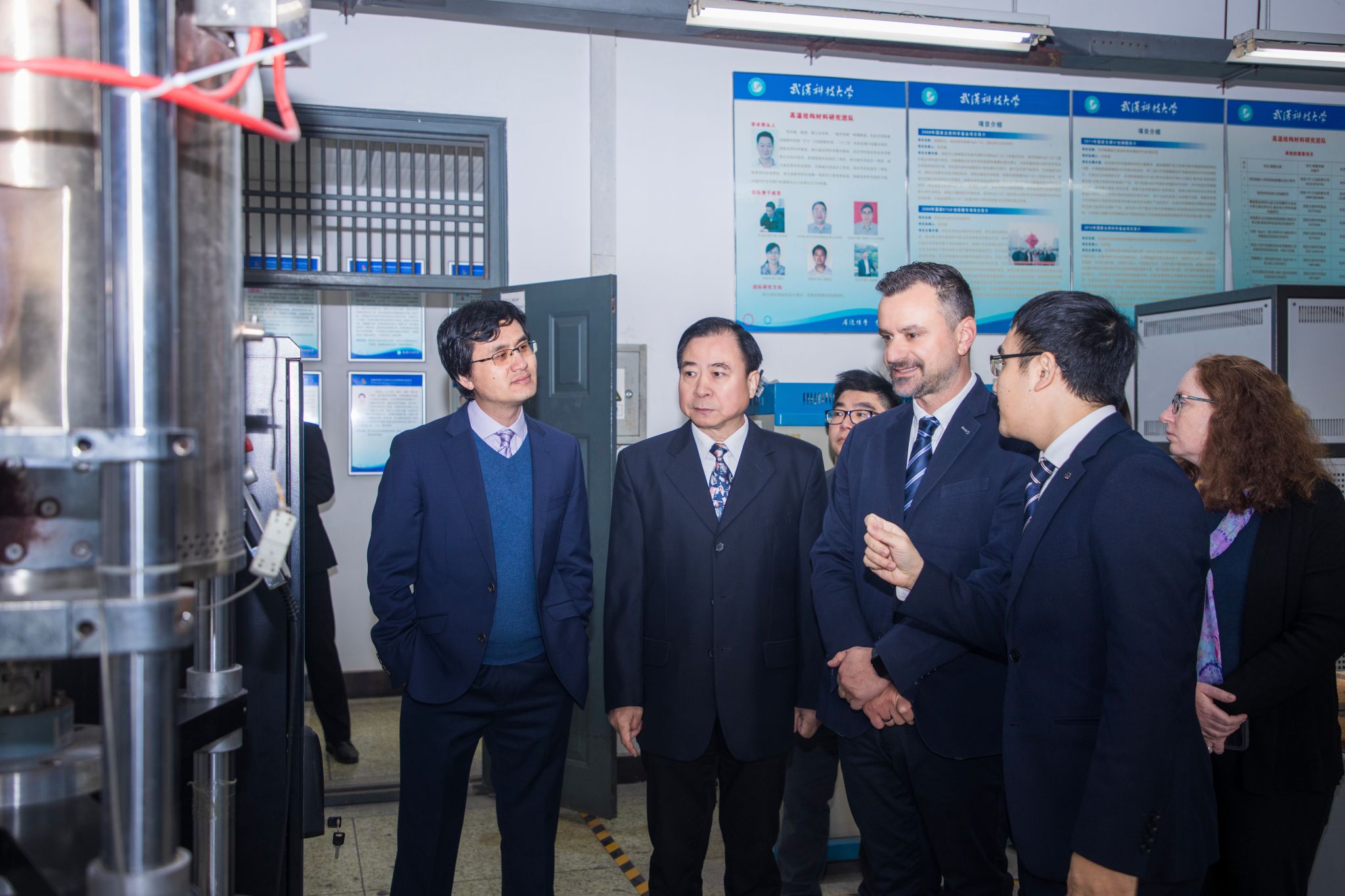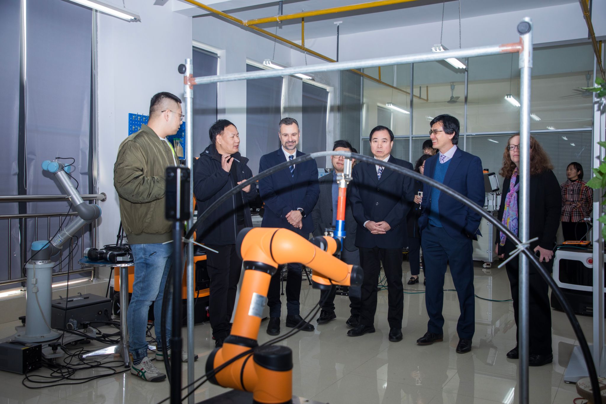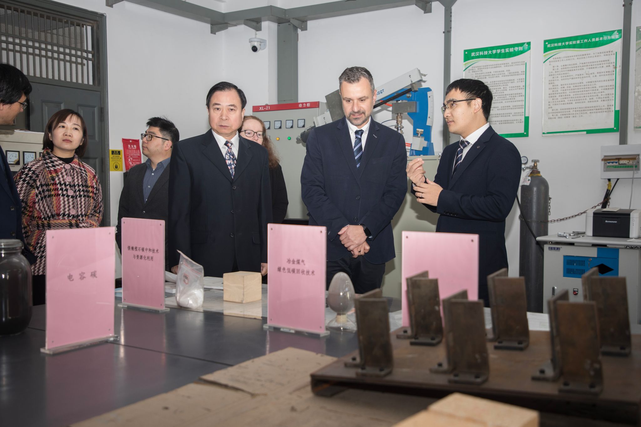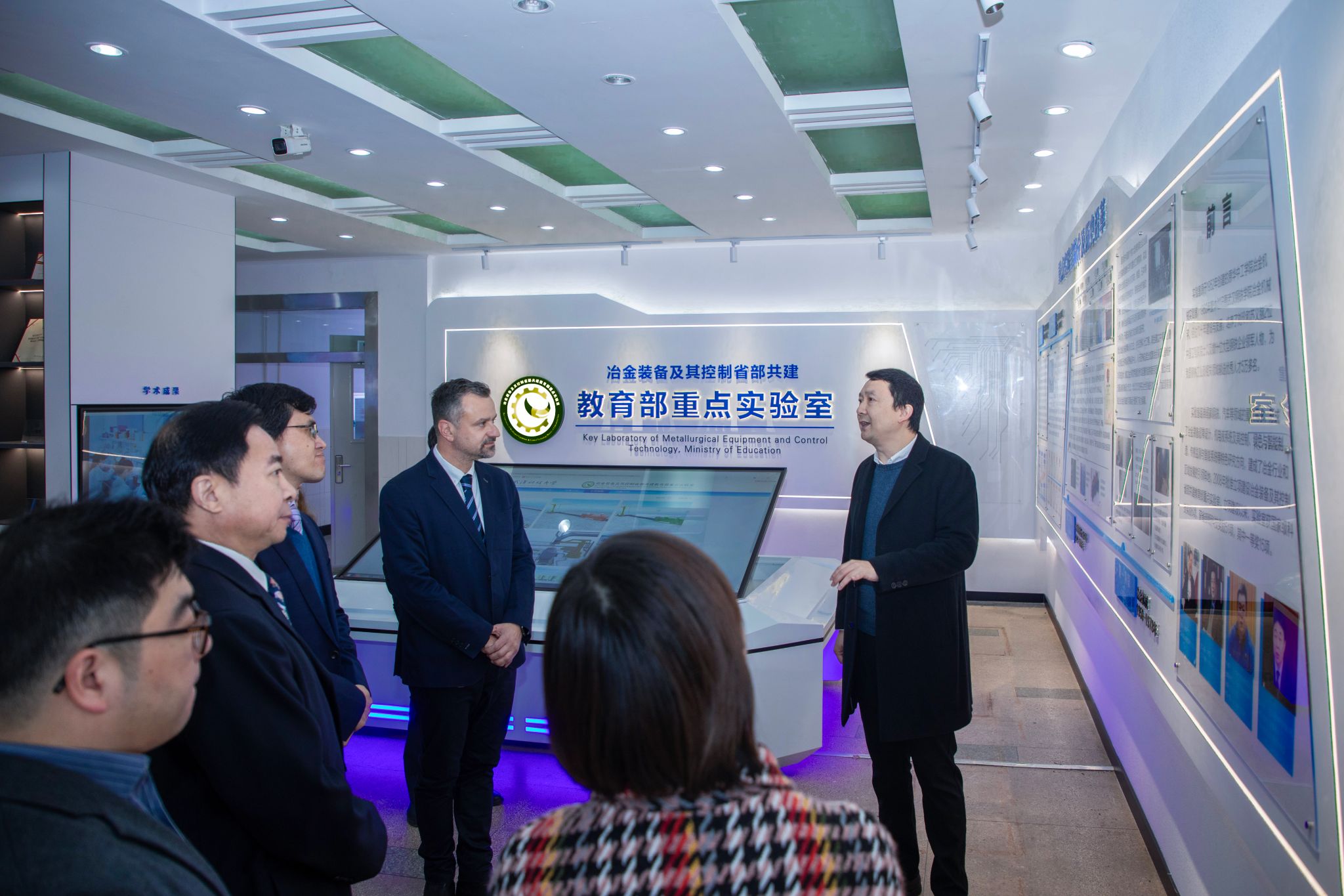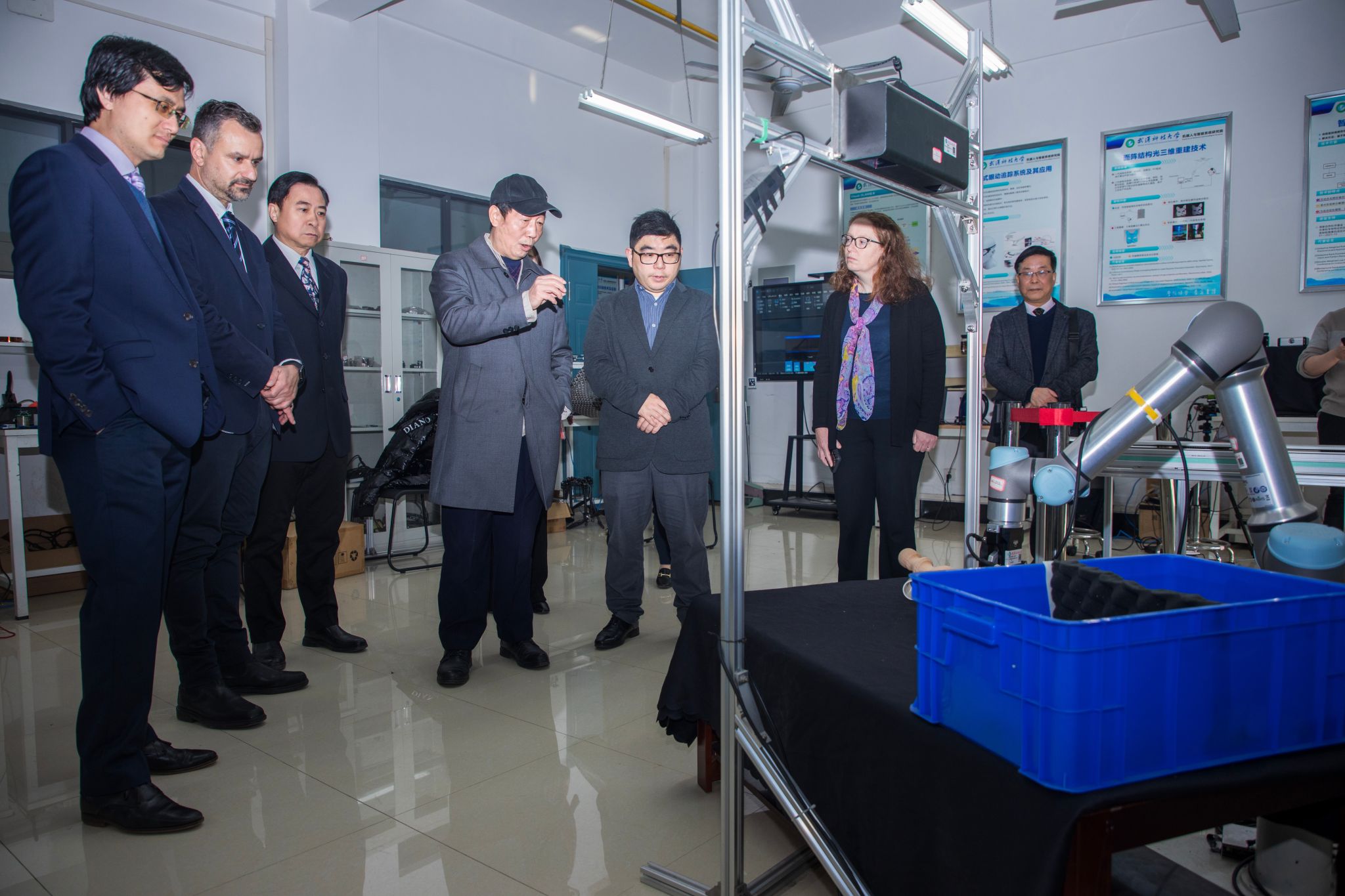 在孙国胜陪同下,代表团一行参观了冶金装备及其控制教育部重点实验室、耐火材料与冶金省部共建国家重点实验室、机器人与智能系统研究院、智能信息处理与实时工业系统湖北省重点实验室和生命科学院。代表团还与迪肯大学合作办学项目学生座谈,回答了学生提出的问题并给予了指导和建议。