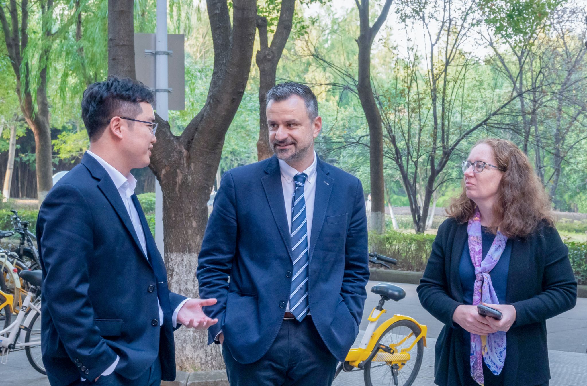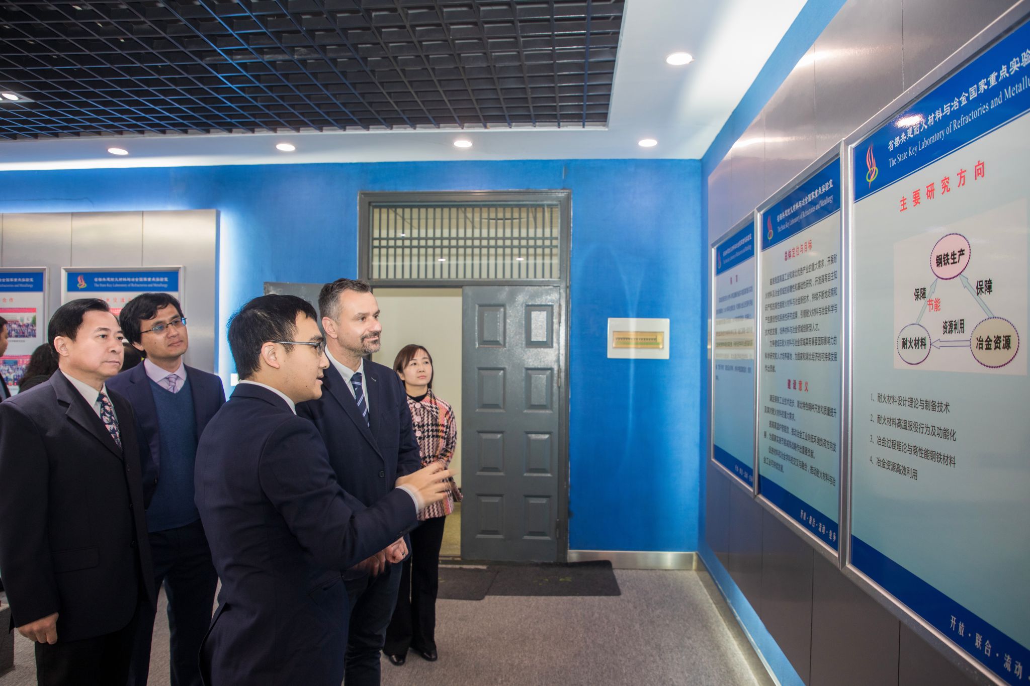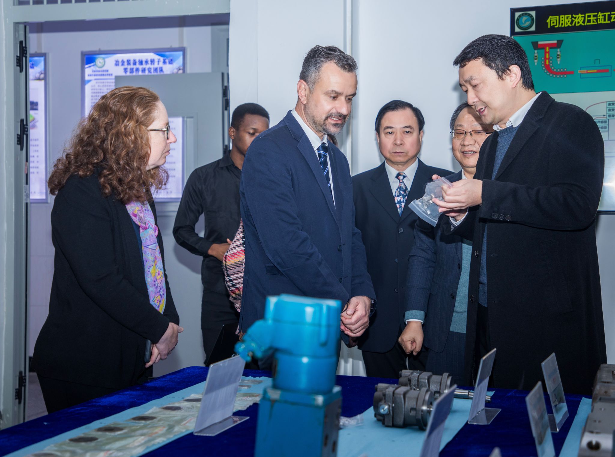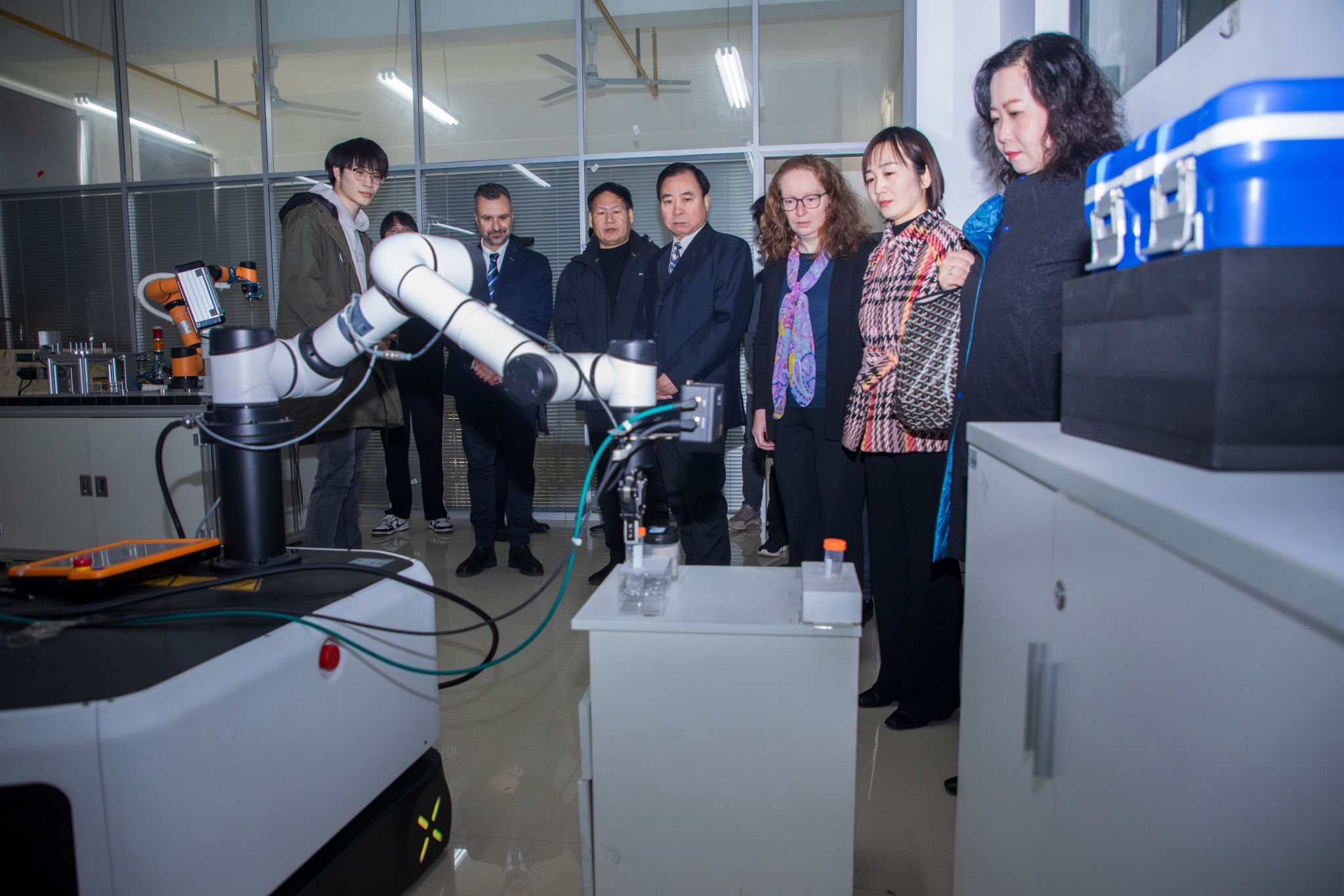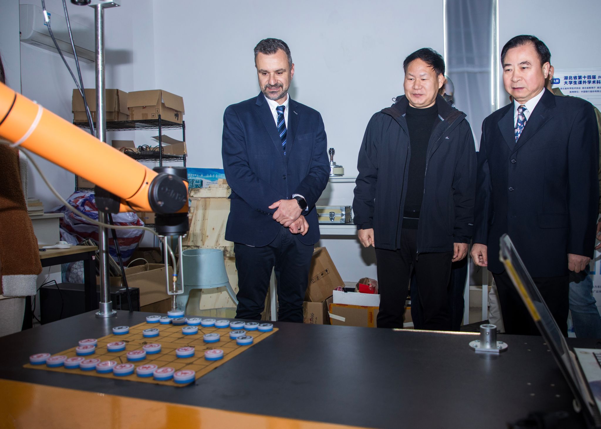 在孙国胜陪同下,代表团一行参观了冶金装备及其控制教育部重点实验室、耐火材料与冶金省部共建国家重点实验室、机器人与智能系统研究院、智能信息处理与实时工业系统湖北省重点实验室和生命科学院。代表团还与迪肯大学合作办学项目学生座谈,回答了学生提出的问题并给予了指导和建议。
