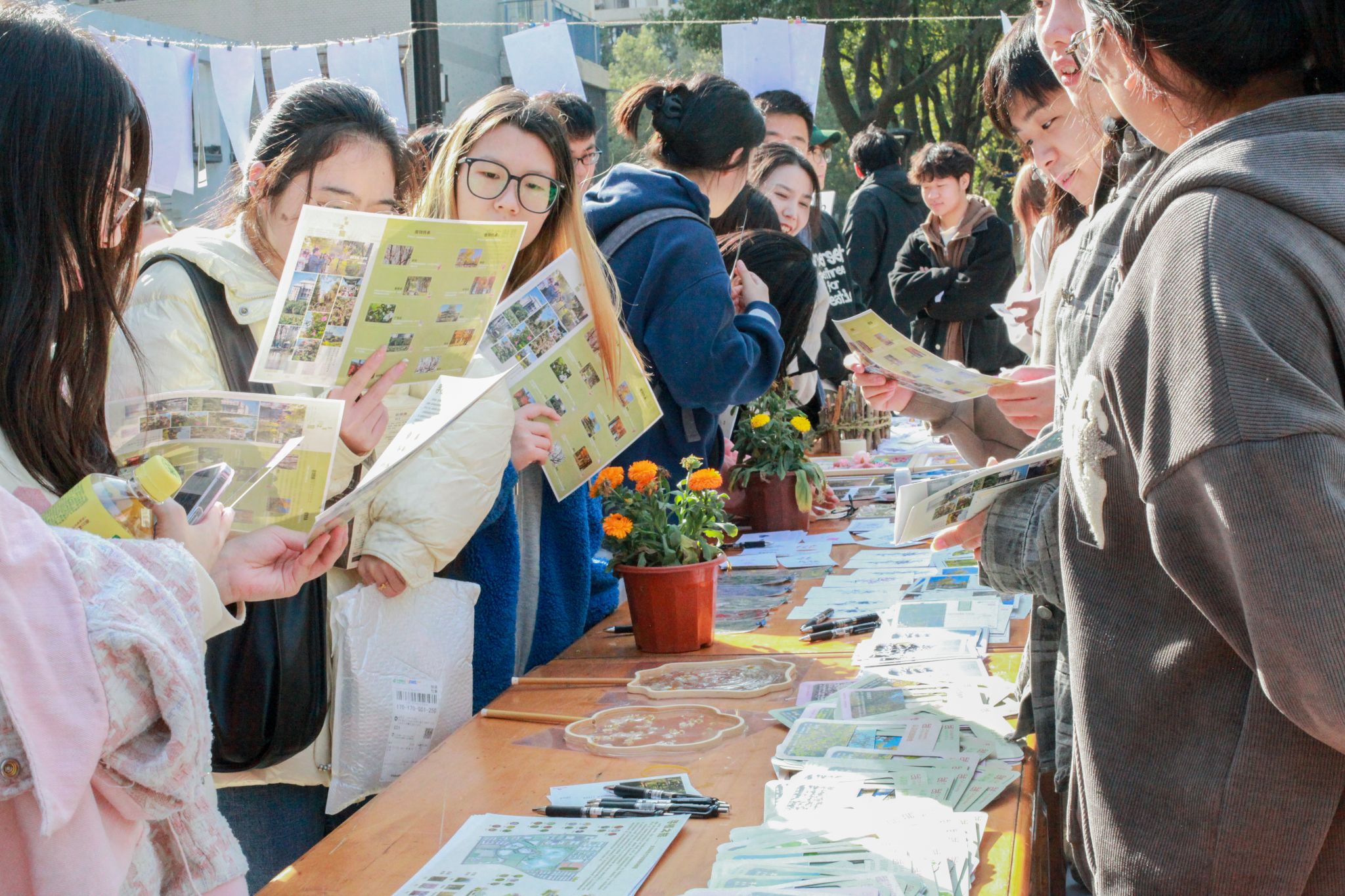 11月23日,我校艺术与设计学院于南园一站式社区开展《植景艺术》课程展暨学业导师下社区活动。学生可通过明信片在校园中寻找植物并打卡参与抽奖,也可在明信片写下对学校的祝福。通过参与此活动加深对校园植物种类的了解。(刘靖瑶)