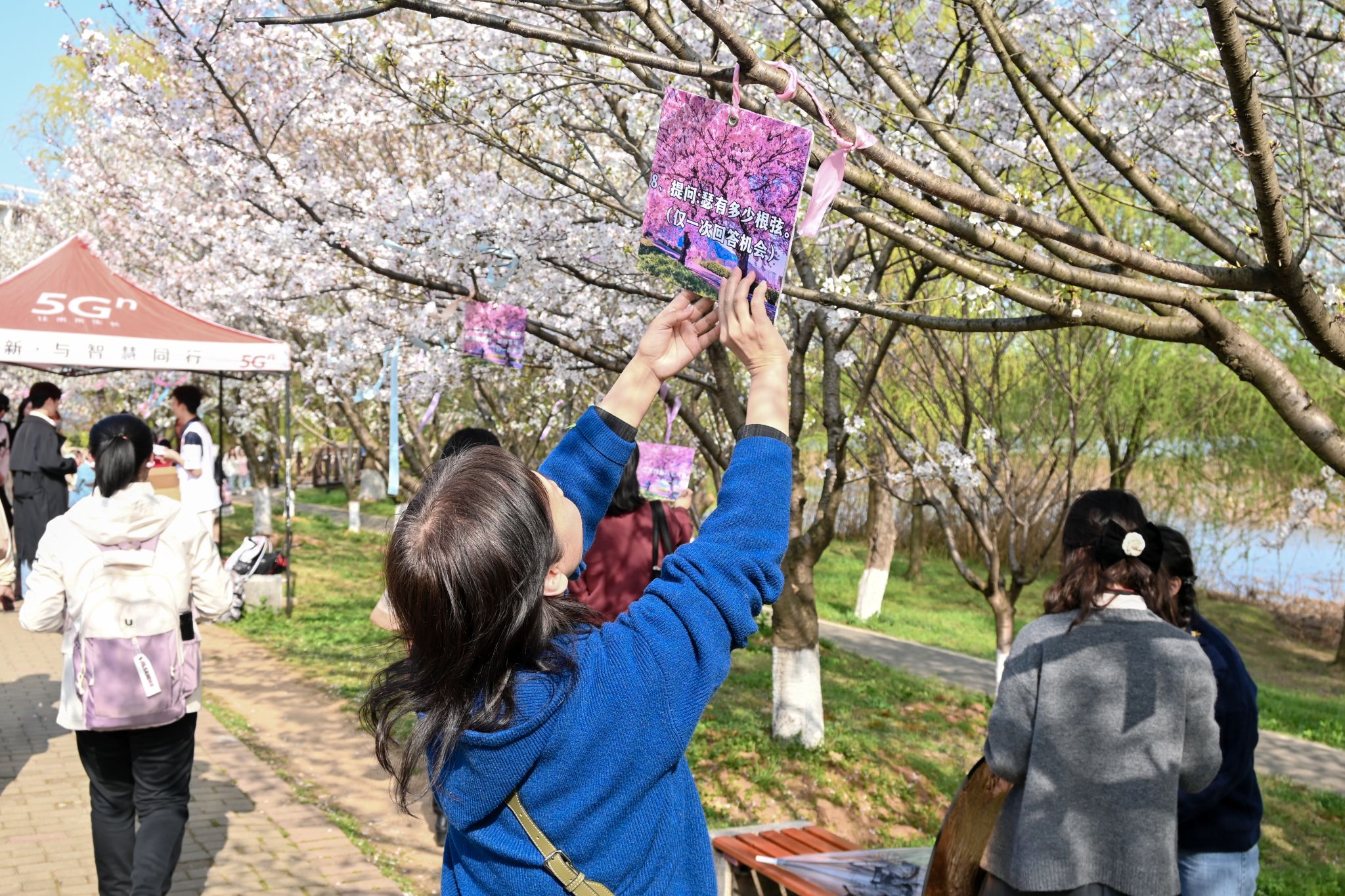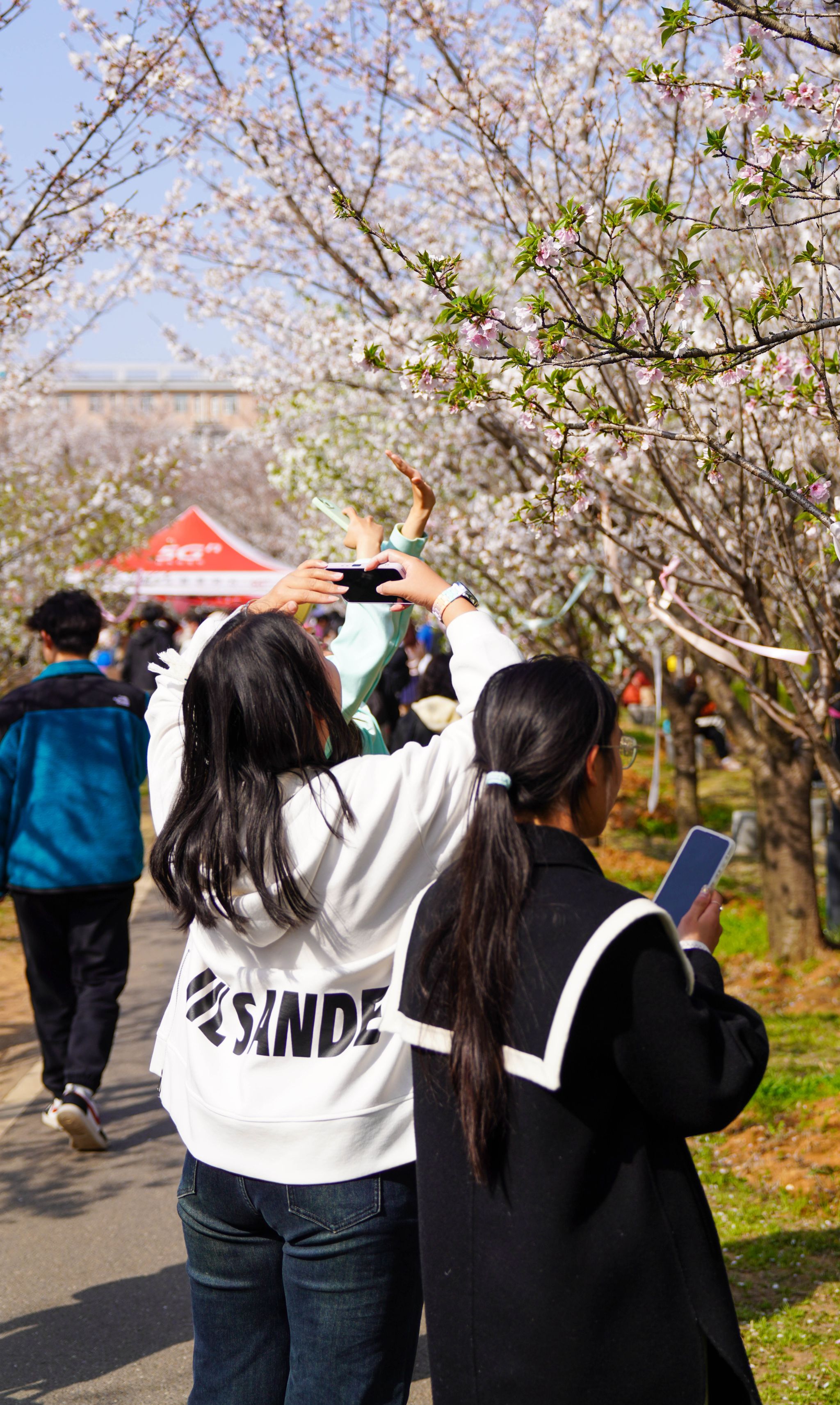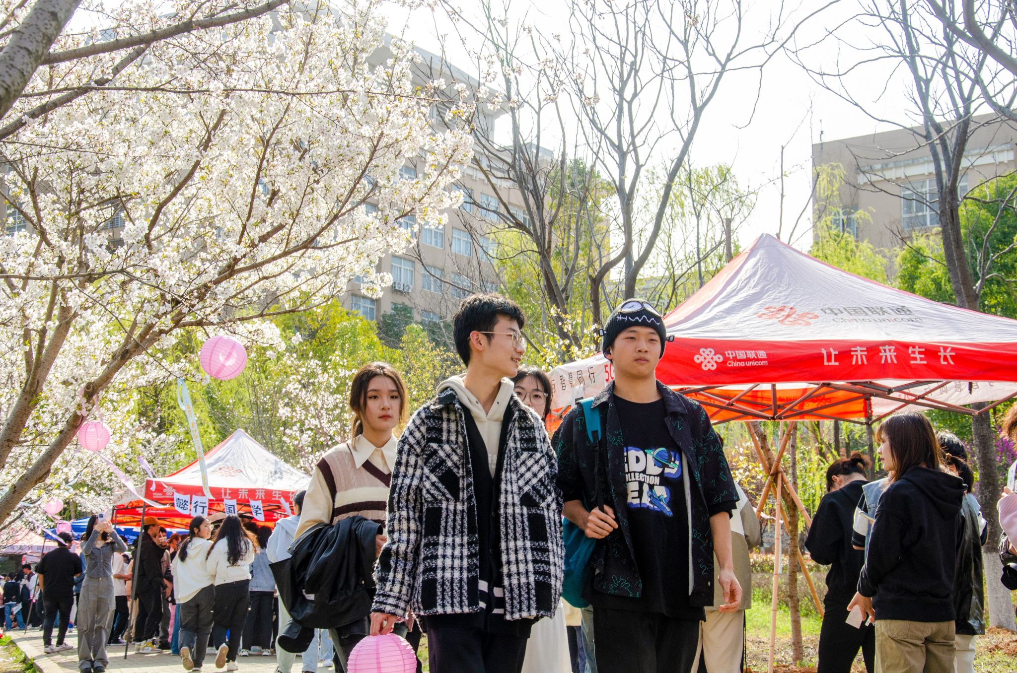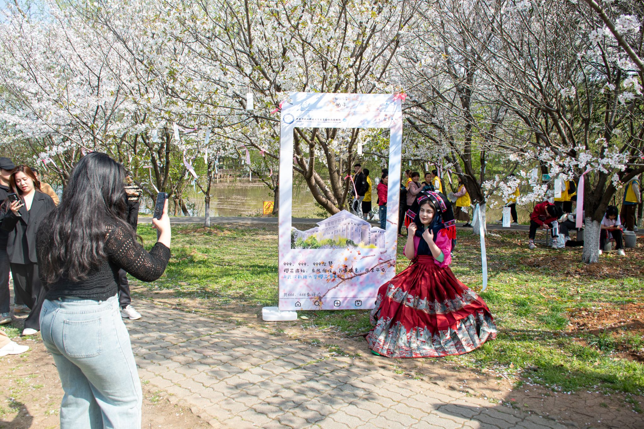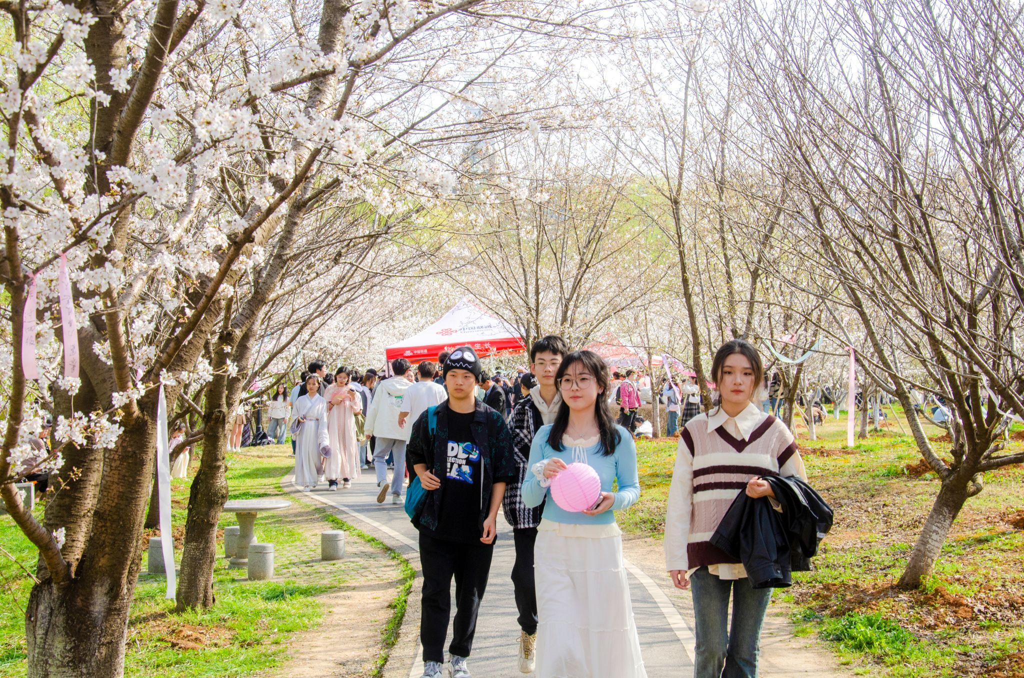 3月21日,我校于黄家湖校区樱花大道成功举办“赏沁湖樱花 悟文化之美”第八届樱花节,师生们漫步樱花大道欣赏挂满枝头的粉樱,我校学生组织沿着樱花大道设帐篷摆摊,以各具特色的游戏吸引着我校师生前来游玩,同学们积极参加活动,身穿传统民族服饰感受春色满园,通过猜谜语、成语接龙、单词接力等活动了解樱花的品质与传统故事,现场热闹非凡。(肖善明 熊雄)