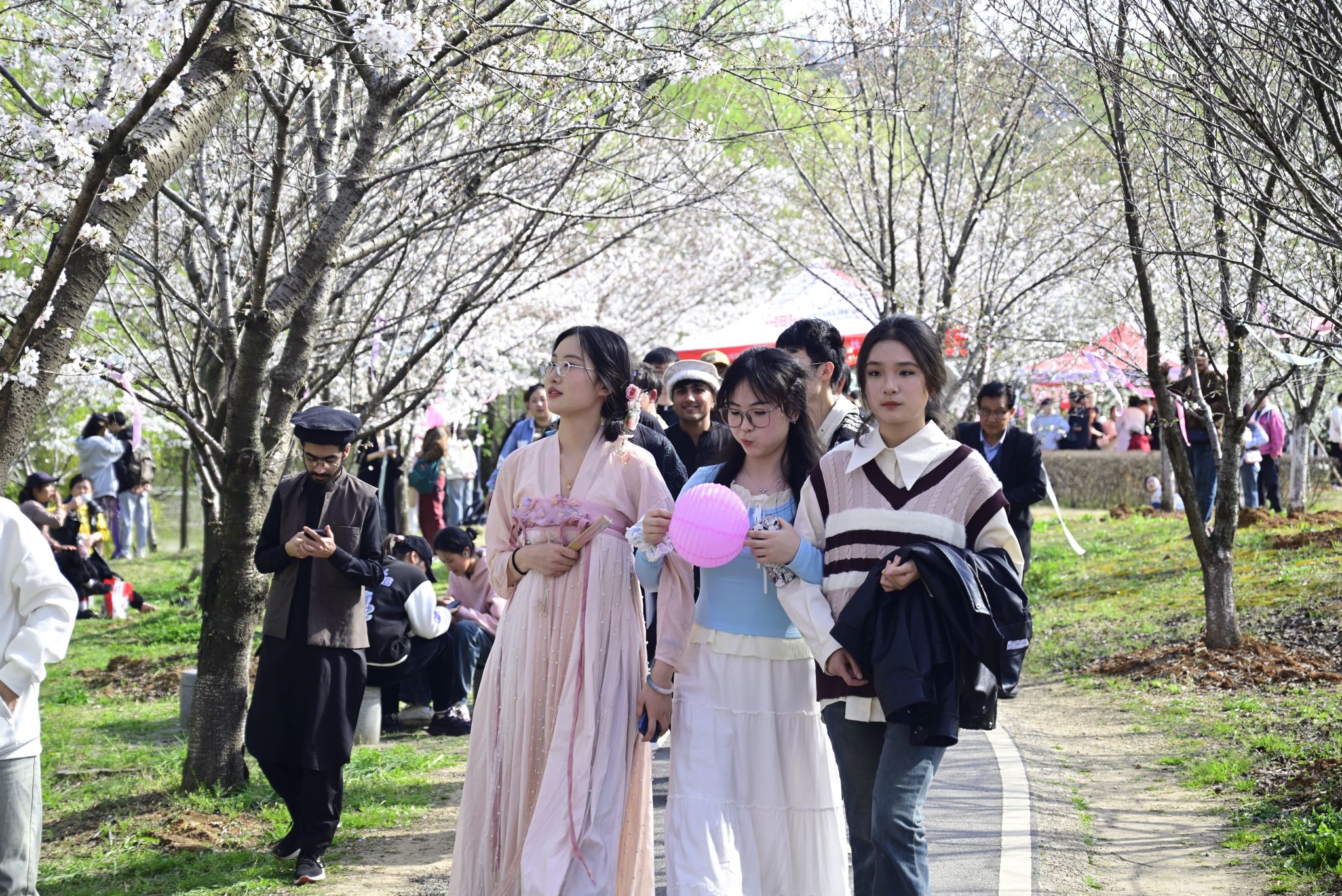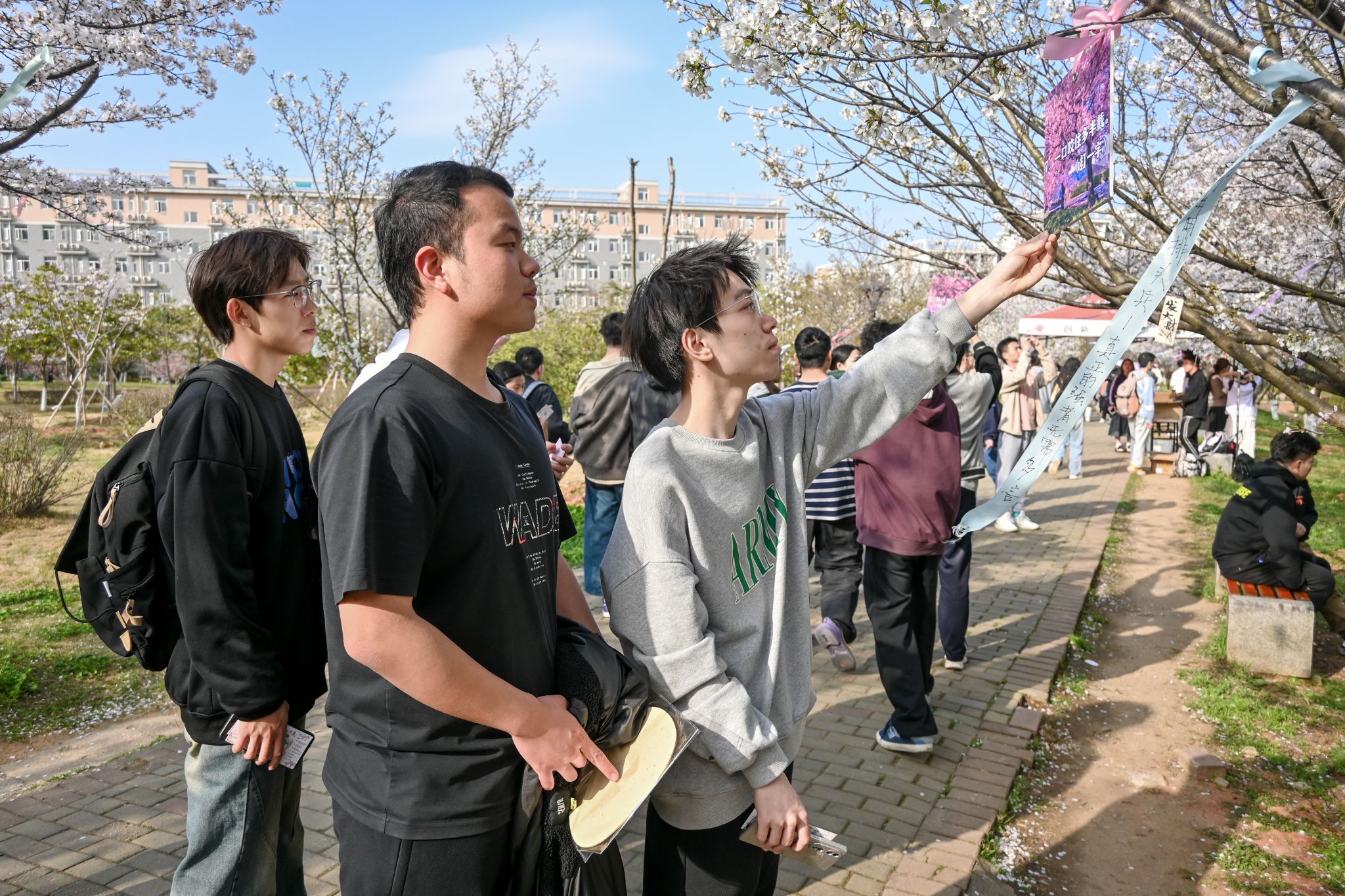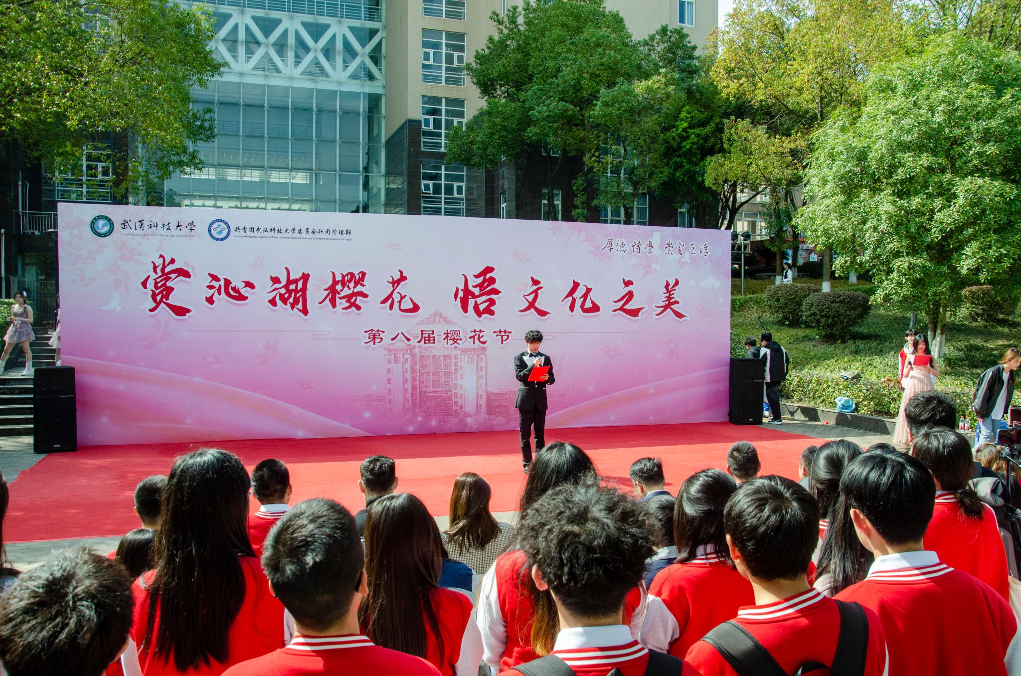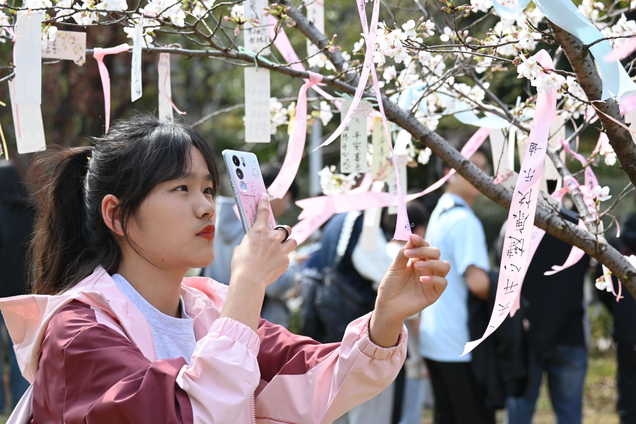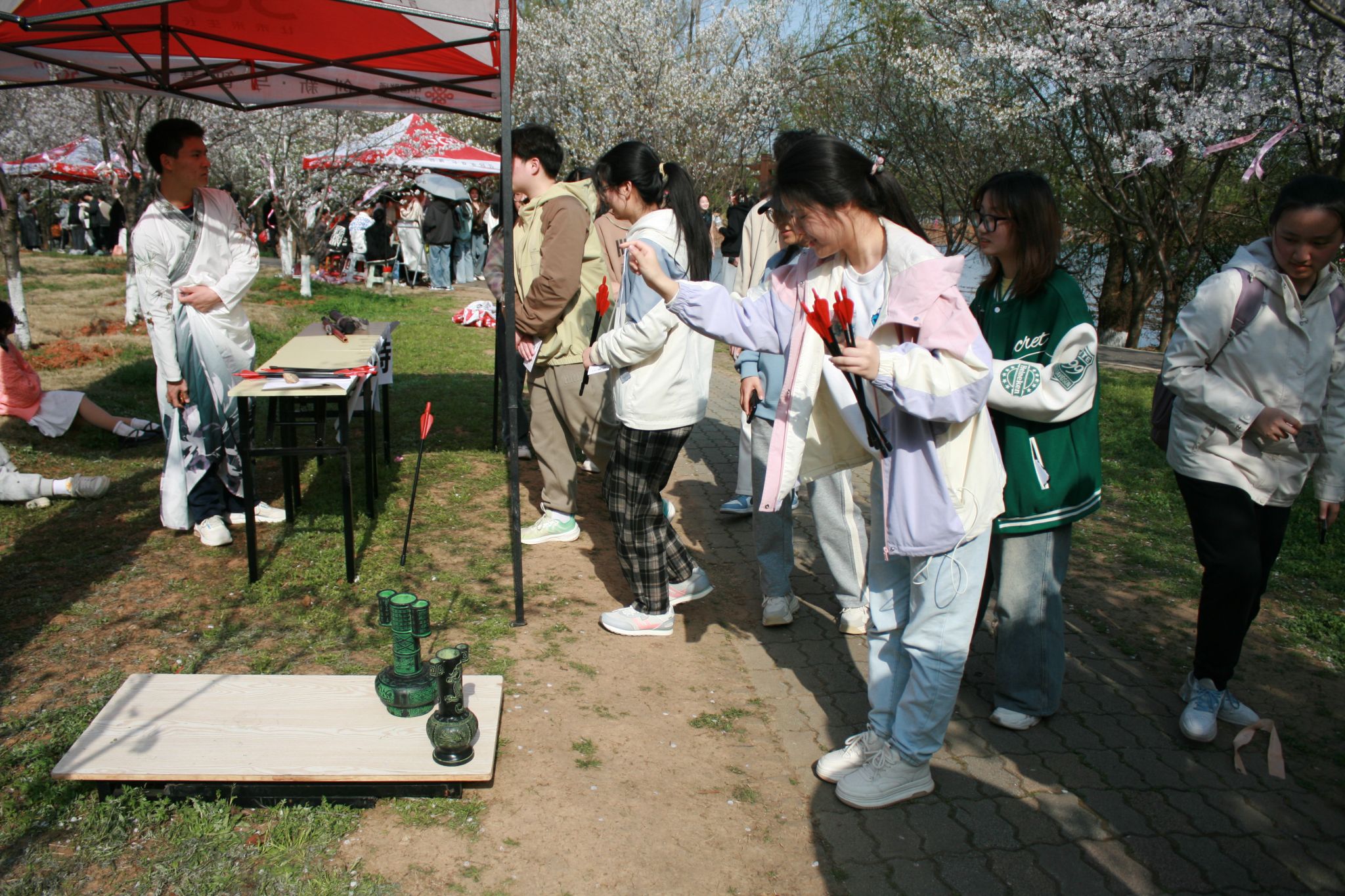 3月21日,我校于黄家湖校区樱花大道成功举办“赏沁湖樱花 悟文化之美”第八届樱花节,师生们漫步樱花大道欣赏挂满枝头的粉樱,我校学生组织沿着樱花大道设帐篷摆摊,以各具特色的游戏吸引着我校师生前来游玩,同学们积极参加活动,身穿传统民族服饰感受春色满园,通过猜谜语、成语接龙、单词接力等活动了解樱花的品质与传统故事,现场热闹非凡。(肖善明 熊雄)