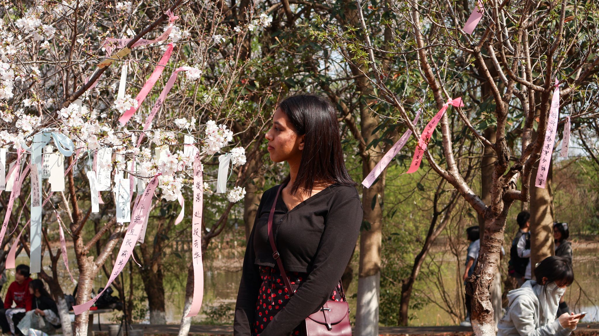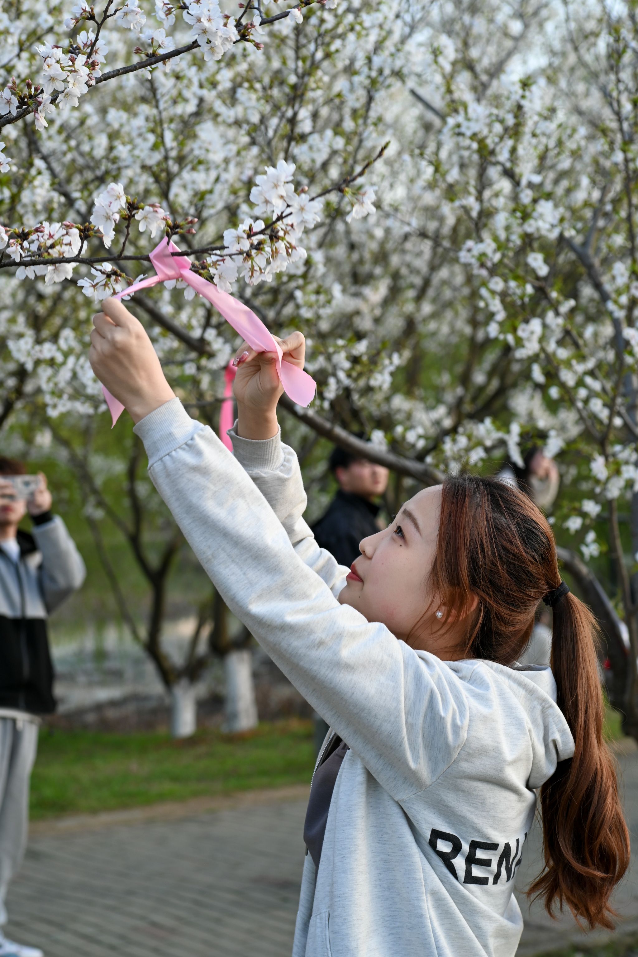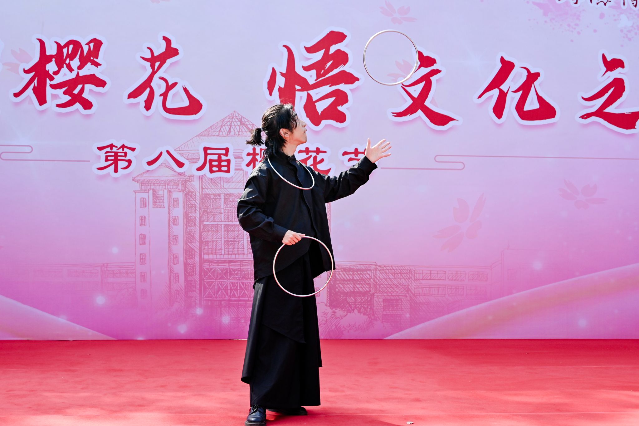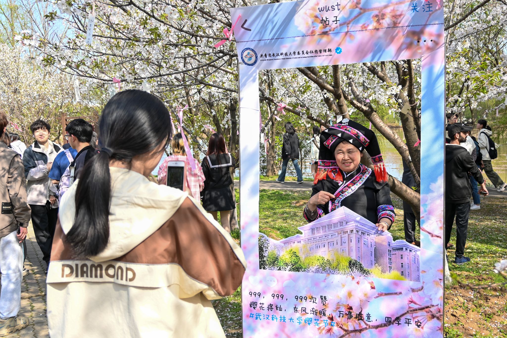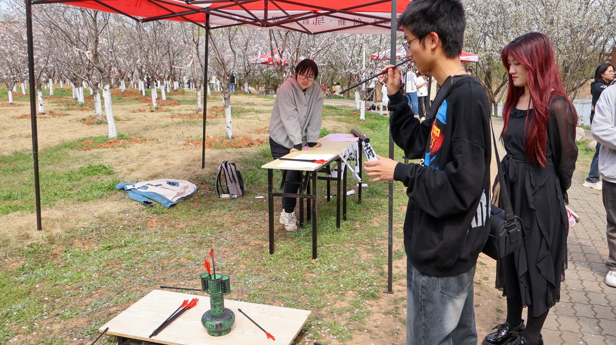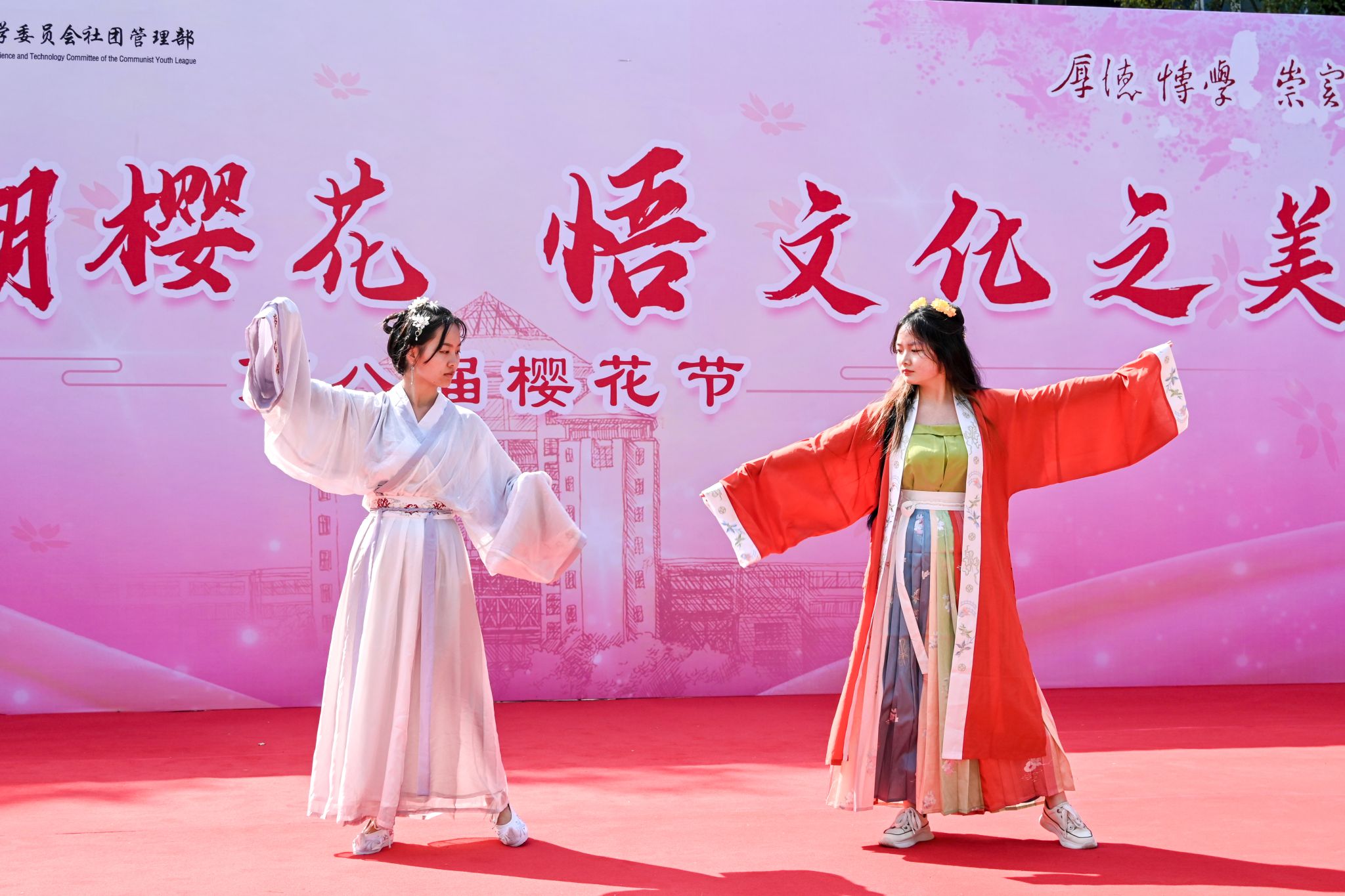 3月21日,我校于黄家湖校区樱花大道成功举办“赏沁湖樱花 悟文化之美”第八届樱花节,师生们漫步樱花大道欣赏挂满枝头的粉樱,我校学生组织沿着樱花大道设帐篷摆摊,以各具特色的游戏吸引着我校师生前来游玩,同学们积极参加活动,身穿传统民族服饰感受春色满园,通过猜谜语、成语接龙、单词接力等活动了解樱花的品质与传统故事,现场热闹非凡。(肖善明 熊雄)