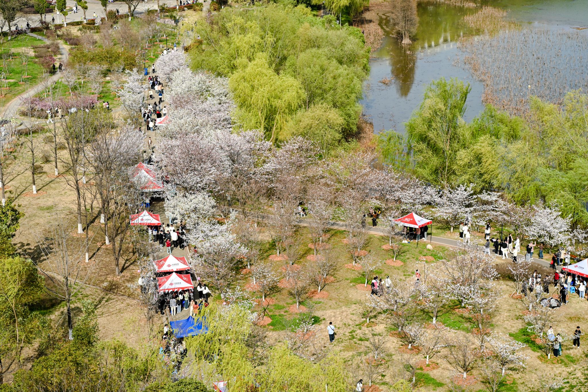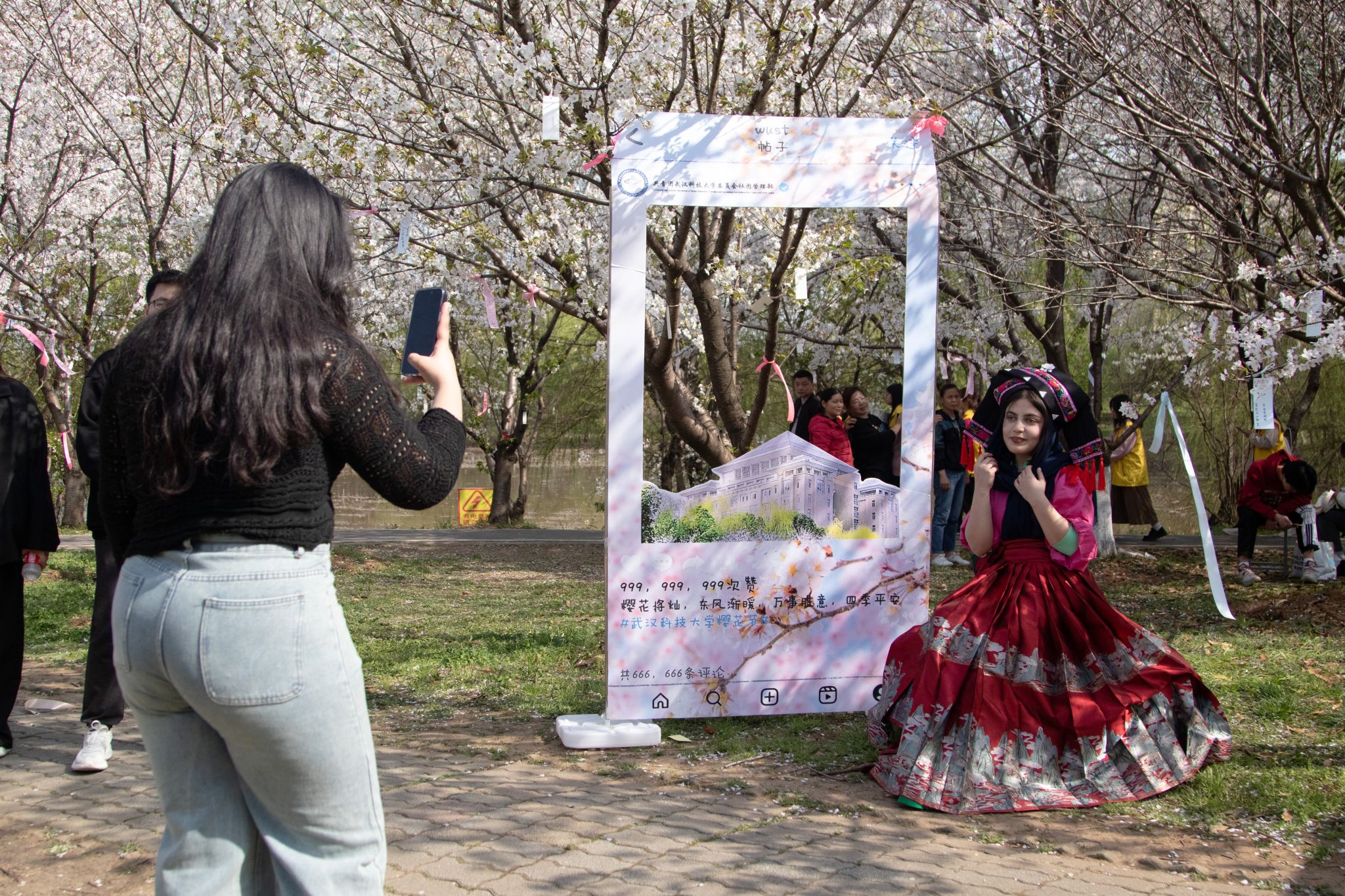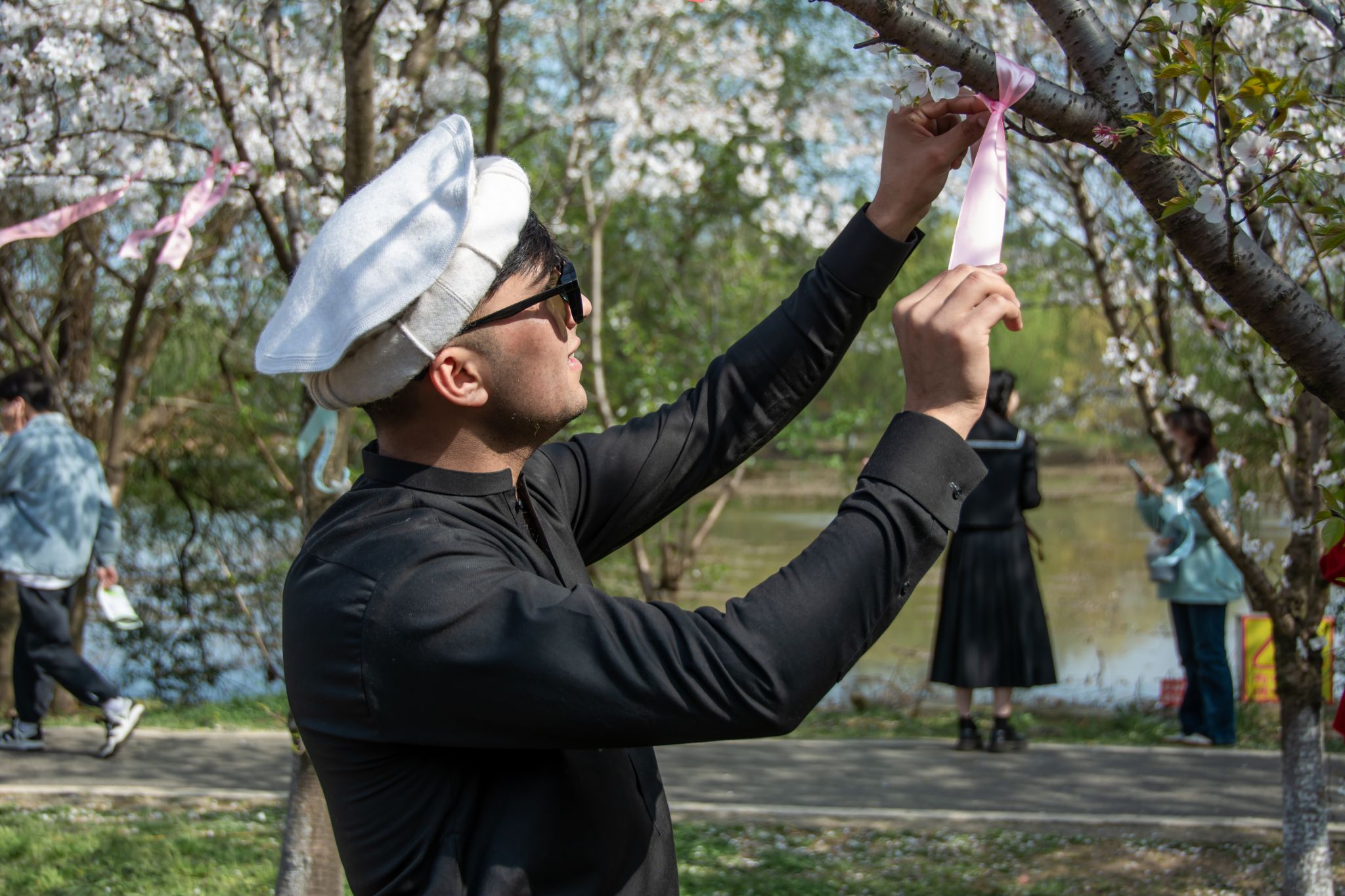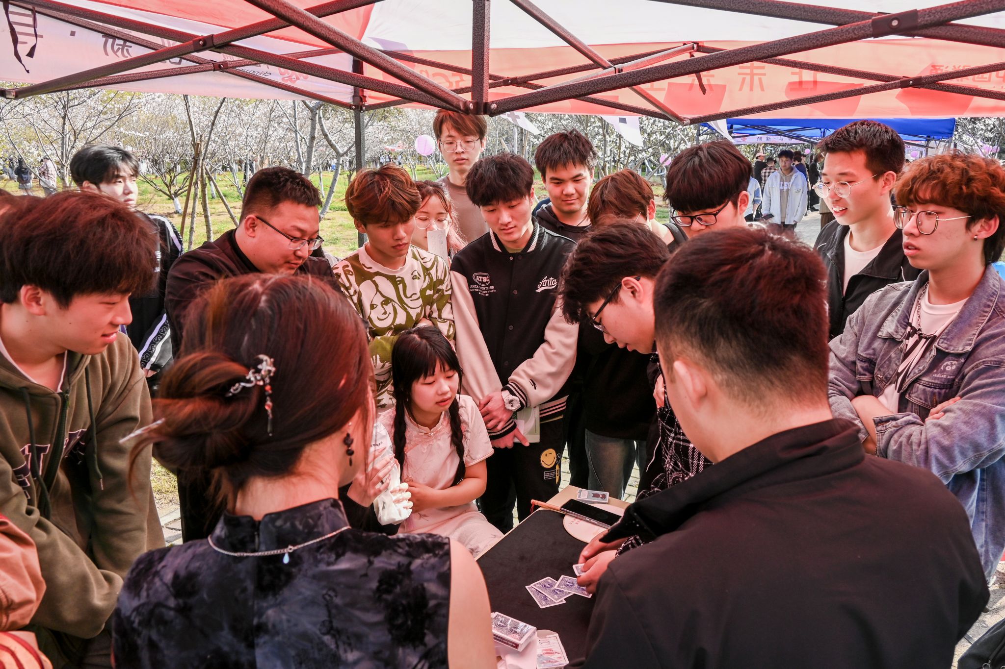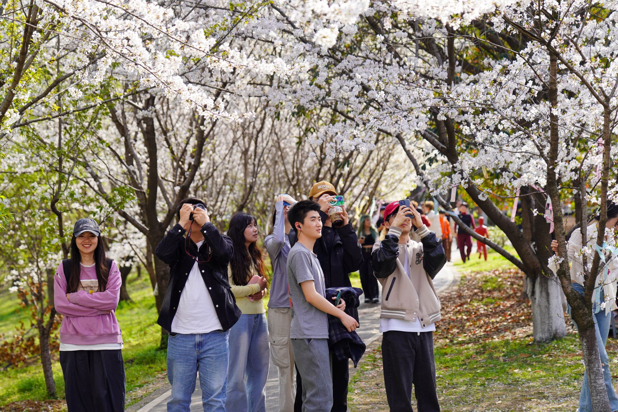 3月21日,我校于黄家湖校区樱花大道成功举办“赏沁湖樱花 悟文化之美”第八届樱花节,师生们漫步樱花大道欣赏挂满枝头的粉樱,我校学生组织沿着樱花大道设帐篷摆摊,以各具特色的游戏吸引着我校师生前来游玩,同学们积极参加活动,身穿传统民族服饰感受春色满园,通过猜谜语、成语接龙、单词接力等活动了解樱花的品质与传统故事,现场热闹非凡。(肖善明 熊雄)