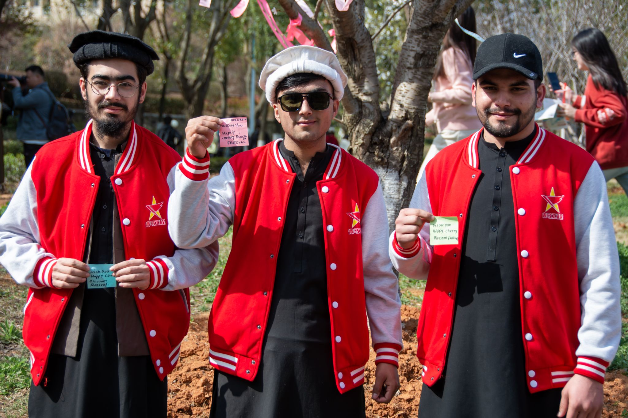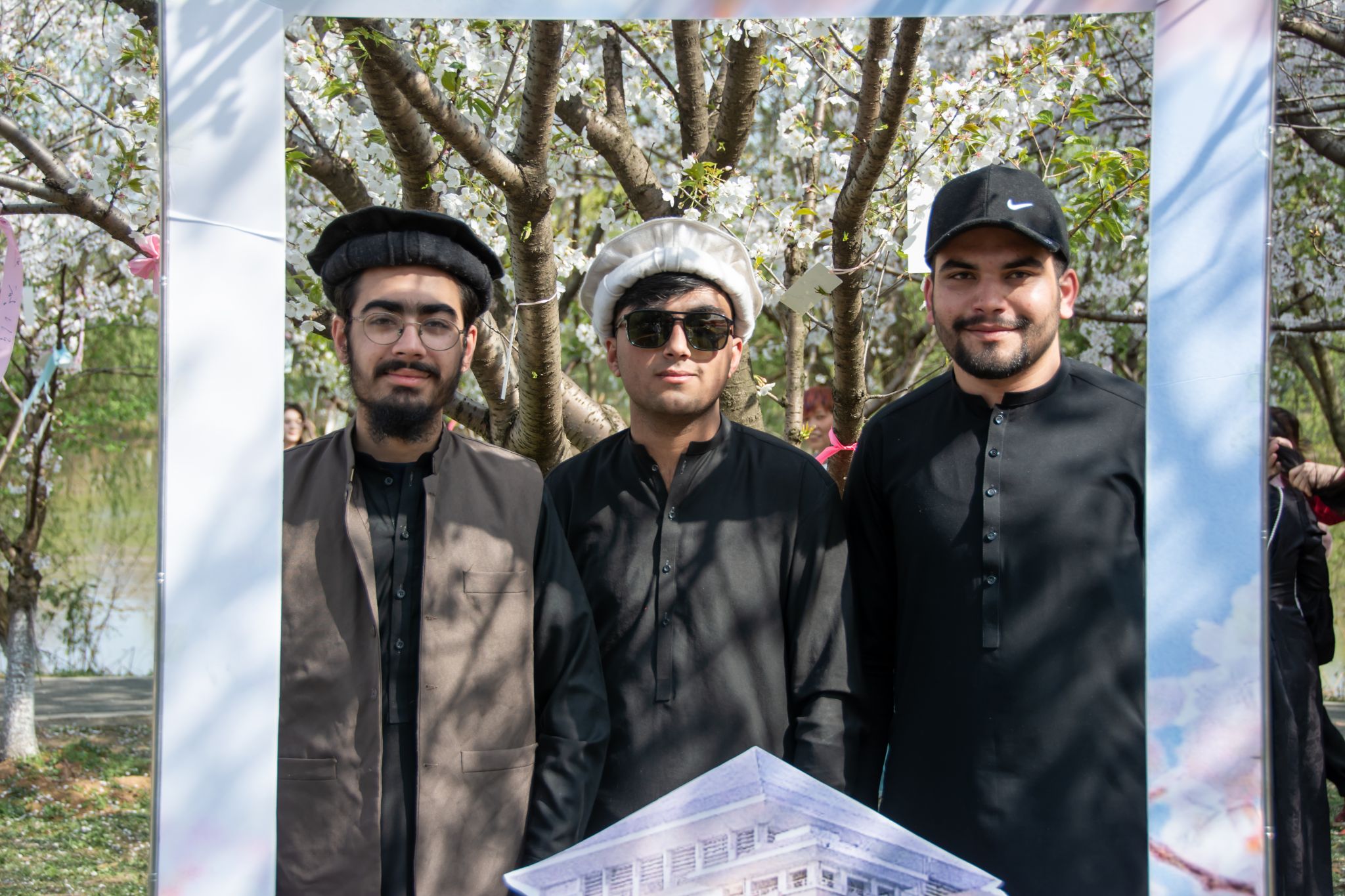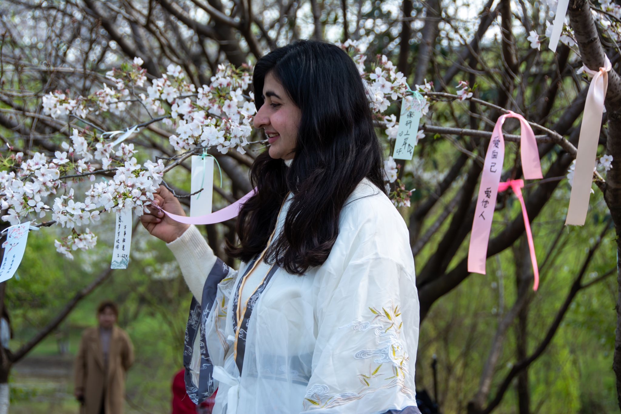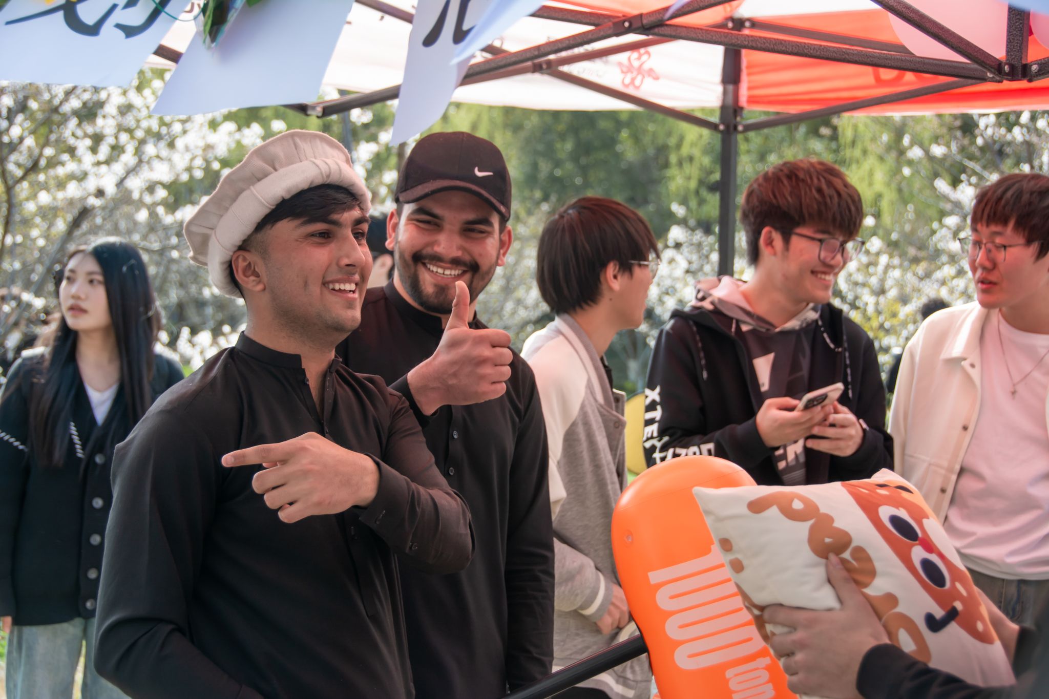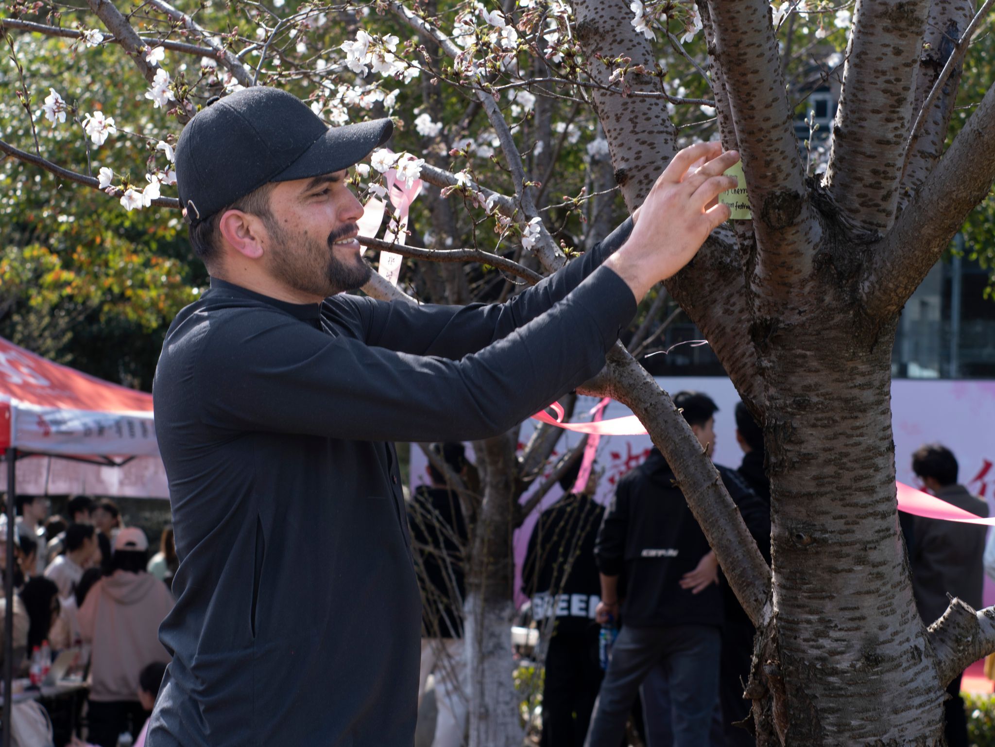 3月21日,我校于黄家湖校区樱花大道成功举办“赏沁湖樱花 悟文化之美”第八届樱花节,师生们漫步樱花大道欣赏挂满枝头的粉樱,我校学生组织沿着樱花大道设帐篷摆摊,以各具特色的游戏吸引着我校师生前来游玩,同学们积极参加活动,身穿传统民族服饰感受春色满园,通过猜谜语、成语接龙、单词接力等活动了解樱花的品质与传统故事,现场热闹非凡。(肖善明 熊雄)
