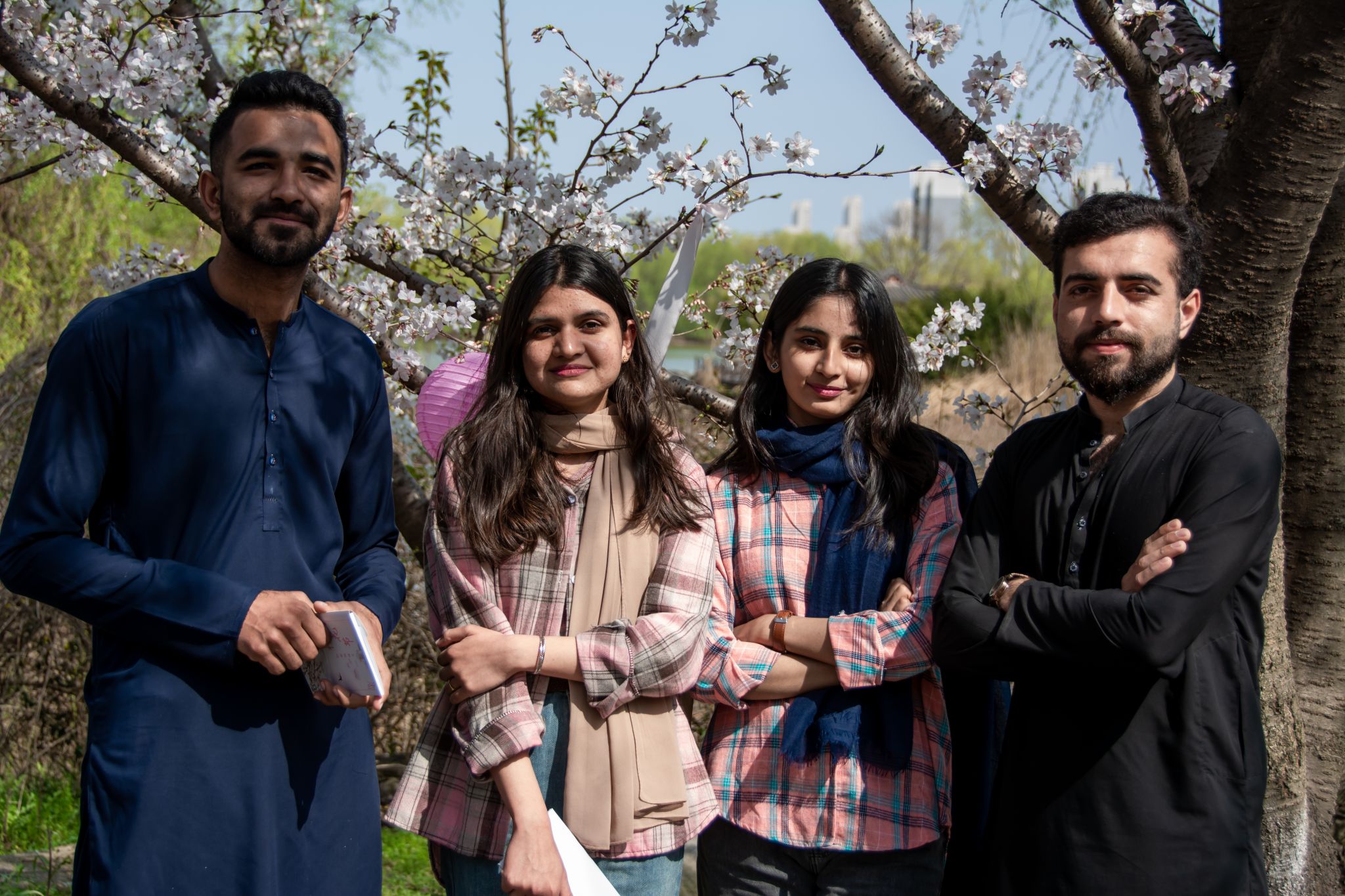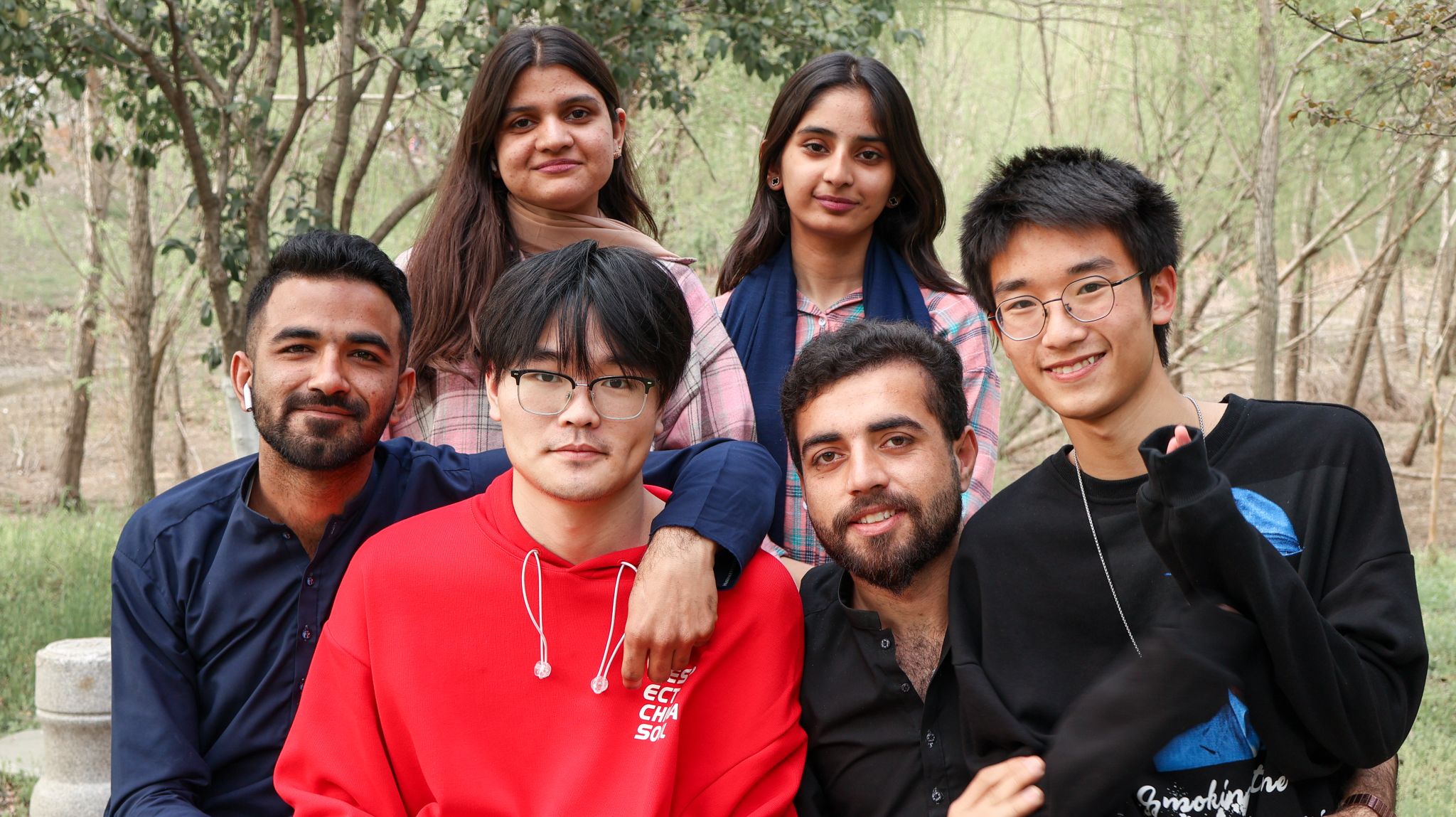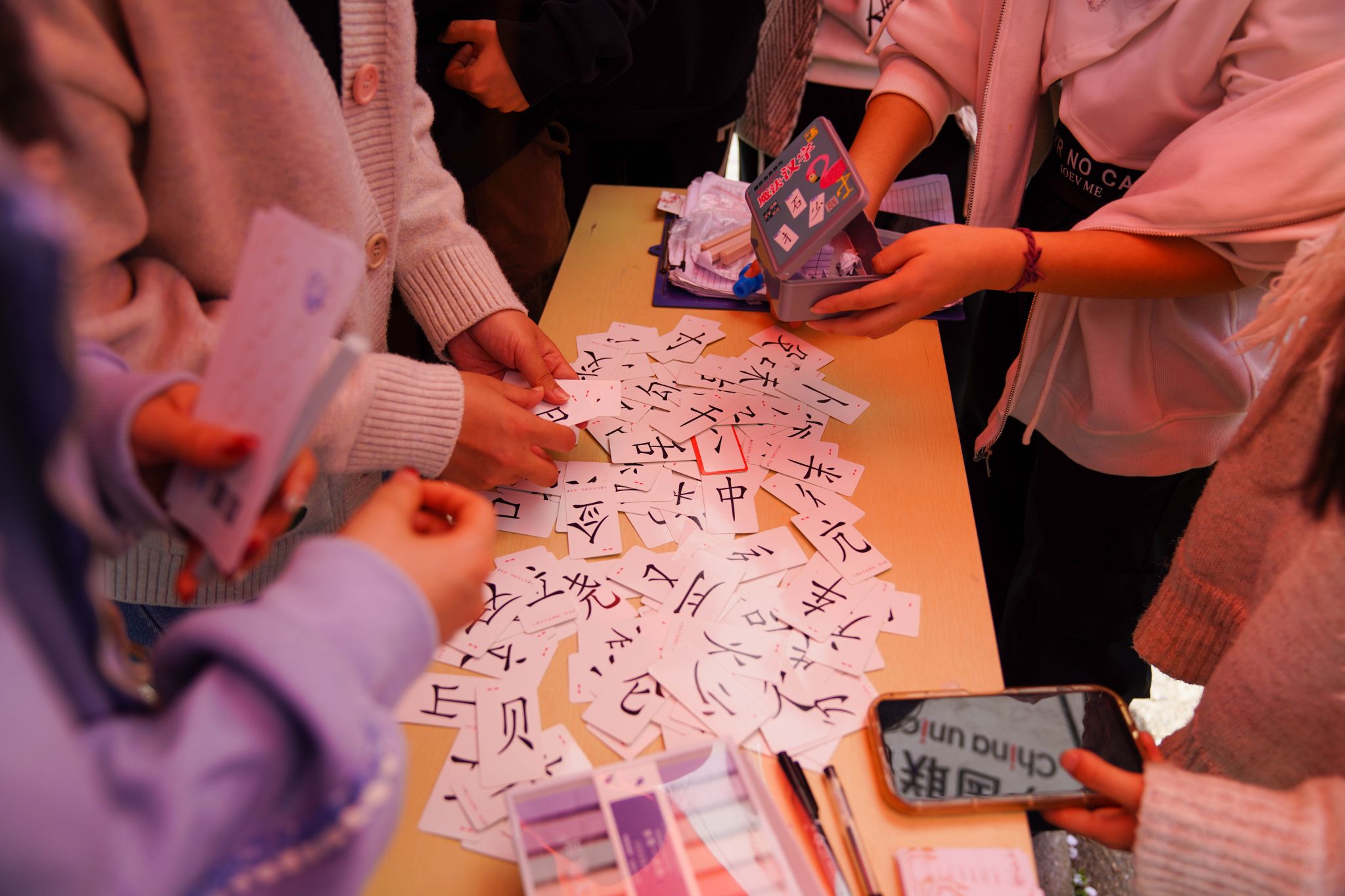 留学生穿中华传统服饰在打卡墙前合影 江子琪摄