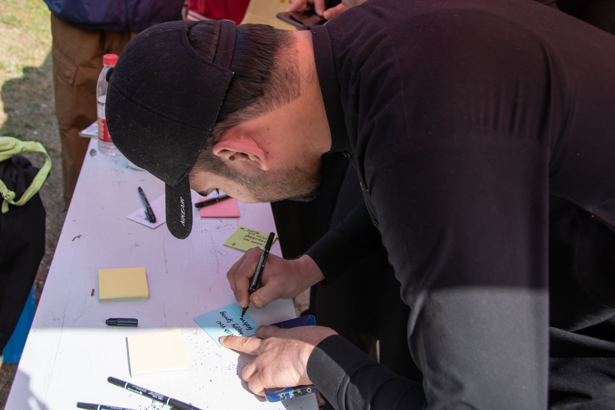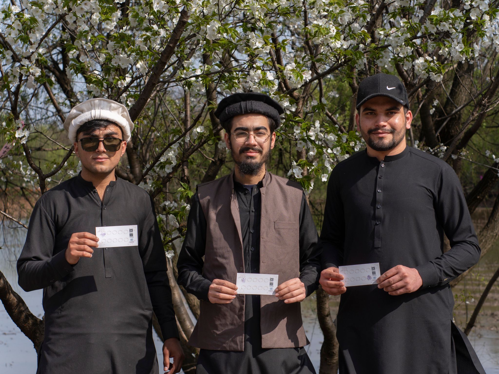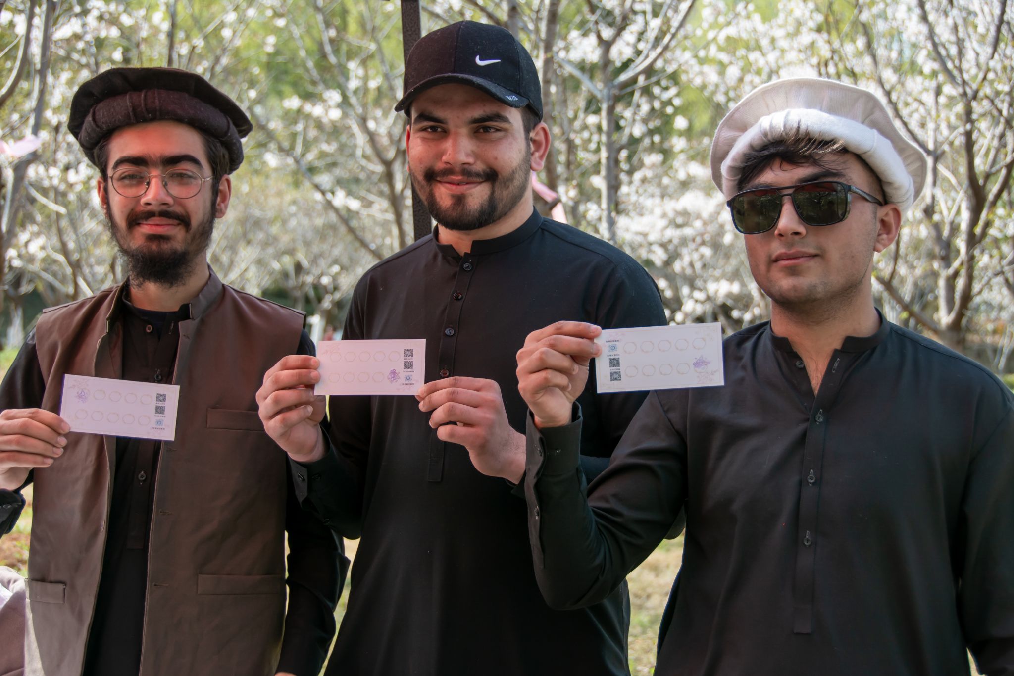 留学生穿中华传统服饰在打卡墙前合影 江子琪摄