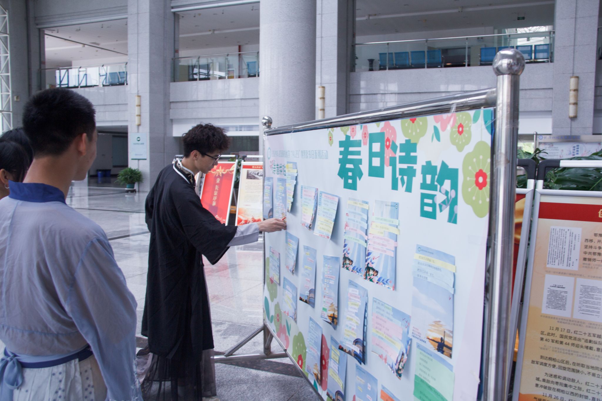 师生观看“诗词拼贴”活动作品 万紫萍摄