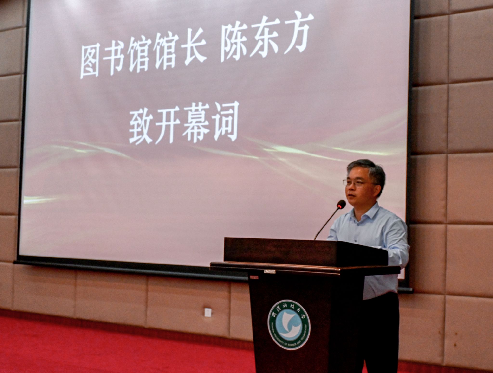 图书馆馆长陈东方致开幕词  黄宏杰摄