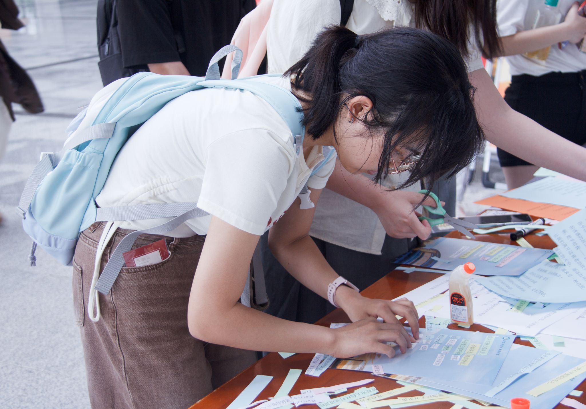 学生给“诗词拼贴”作品投票 万紫萍摄