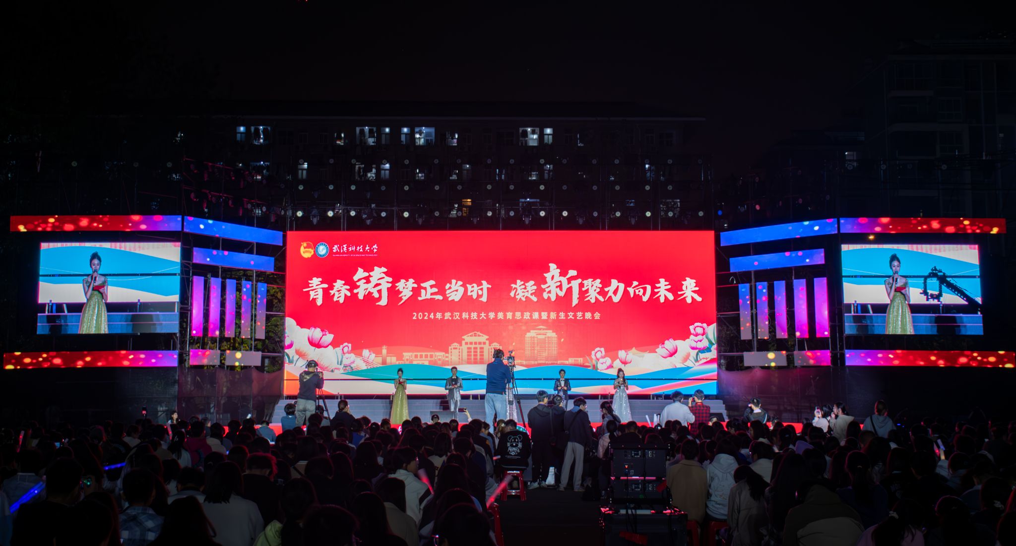 青春铸梦正当时,凝“新”聚力向未来。11月16日晚,我校在黄家湖校区北园操场举办2024年美育思政课暨新生文艺晚会,用丰富多彩的校园文化铸梦,与新生共绘青春新篇章。党委学生工作部部长潘丽莎、校团委书记王媛媛、学校相关职能部门负责人及各学院党委副书记出席晚会,7000余人新生参加晚会。