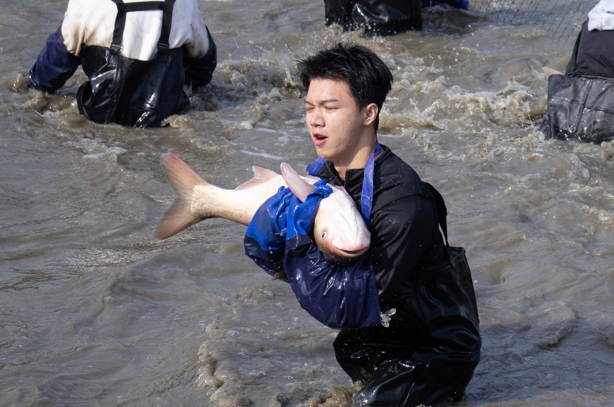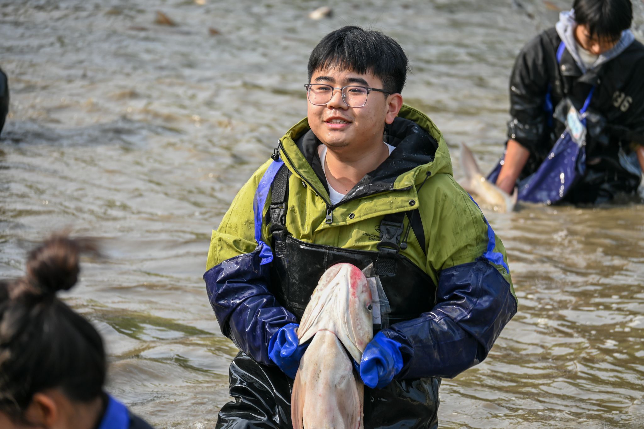 11月21日,学校迎来办学126周年校庆日,第十届沁湖鱼宴系列活动开启,万余名中外师生共同捕鱼、齐赴鱼宴。本组照片展示学生们在沁湖里捕鱼,与鱼“较量”的生动场景。