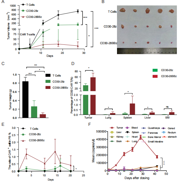 三代CD30 CAR T细胞显示出较强的靶向杀瘤能力