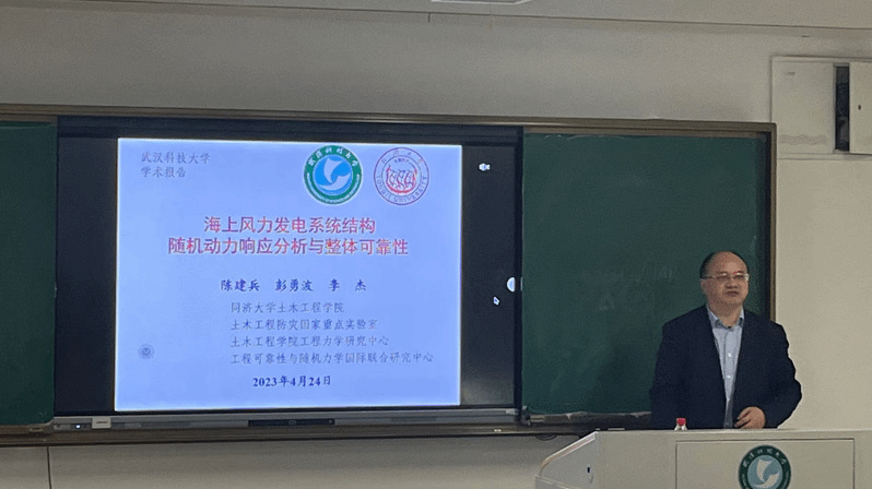 武科大网讯(通讯员文思宇)为进一步加强学术交流与合作,4月24日下午,同济大学陈建兵教授应邀于教十一楼A区617报告厅为全校师生作学术报告。报告主题为《海上风力发电系统结构随机动力响应分析与整体可靠性》。城市建设学院副院长朱红兵教授主持本次学术报告会,百余名师生现场参会。