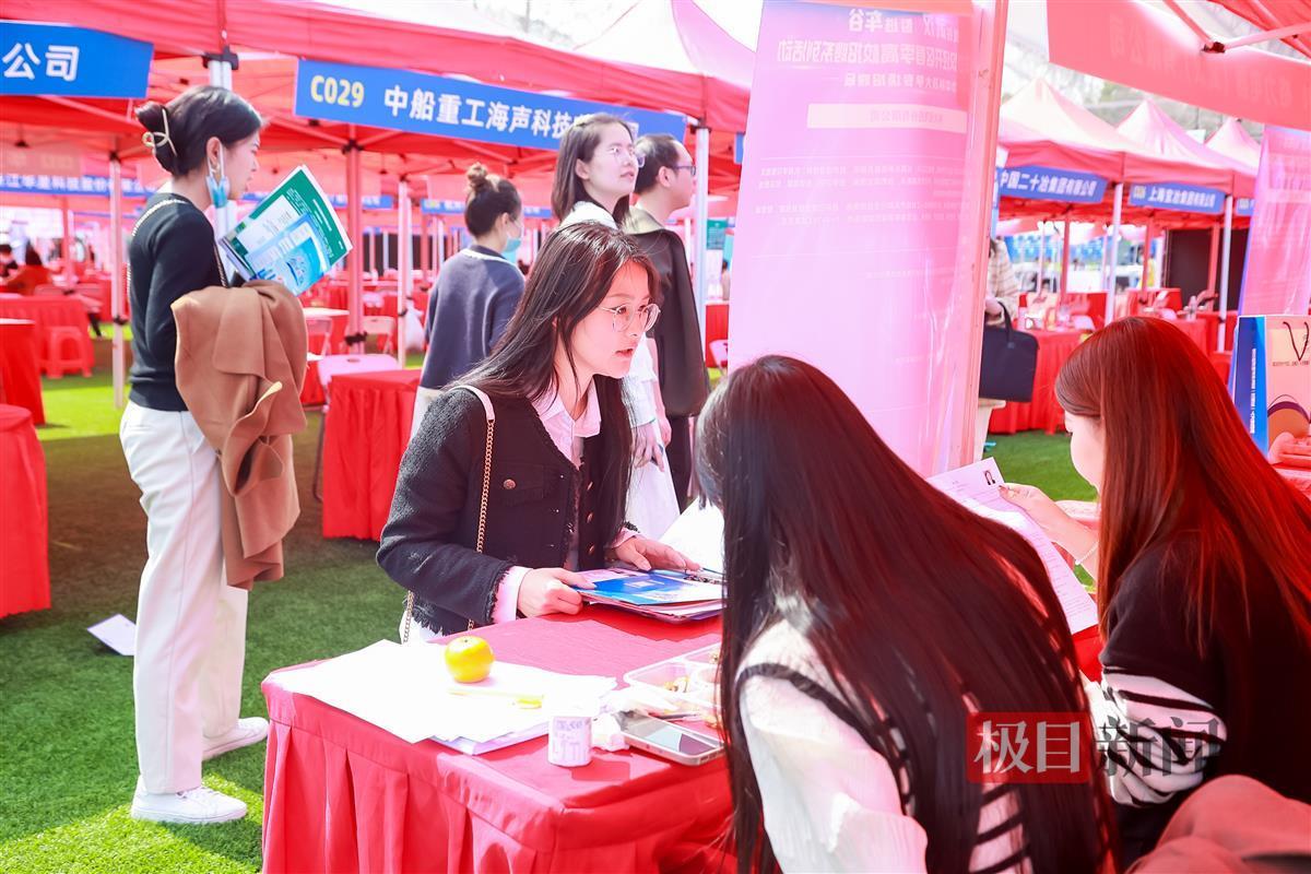 极目新闻记者看到,招聘现场,人头攒动,气氛火热, 500多家企业的招聘台摆满了中心广场,拿着简历的大学生们穿梭其间寻找心仪的岗位。而为了招聘到合适人才,不少企业的工作人员也主动出击,给大学生发放招聘单。不过记者也注意到,根据用人单位属性的不同,求职冷热也并不均等,国企、事业等用人单位,提供的岗位比较充足,待遇相对优厚,受到毕业生青睐,交简历问需求的求职者队伍往往排到三四米开外。