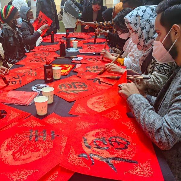 “在中国的传统文化中,写春联和写福字是必不可少的。”在教师陈春梅的指导下,留学生们拿起毛笔,一笔一划认真书写,几幅红红火火的春联与福字完成了。制作灯笼颇受留学生的欢迎。为让留学生们体验到兔年的传统文化,学院买来灯笼零件,师生一同动手组装。在放风筝的活动上,留学生自由发挥,在白风筝上面画上自己喜爱的图案,并且贴上写好心愿的纸条,在室外尽情放飞。