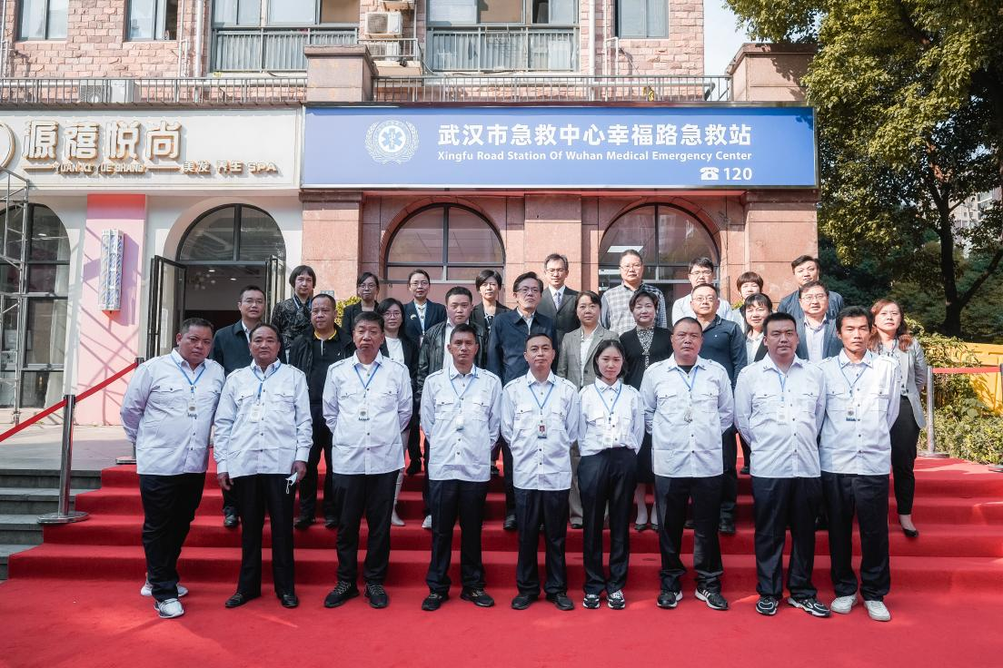 随后,武汉市卫健委医政医管处科长张保华、武汉市急救中心主任江旺祥、洪山区卫健局副局长权莹以及天佑医院相关领导共同为“武汉市急救中心幸福路急救站”揭牌。