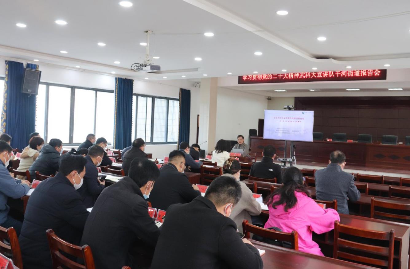 昨日,武科大宣讲队来到杜湖街道,开展学习贯彻党的二十大精神宣讲活动,为全办70多名党员干部作了一场生动的理论宣讲。